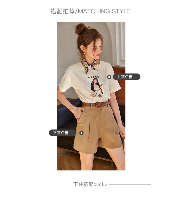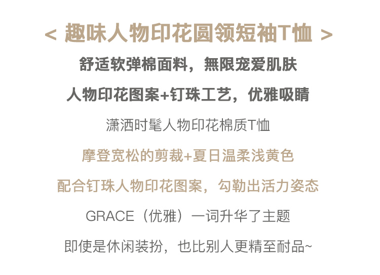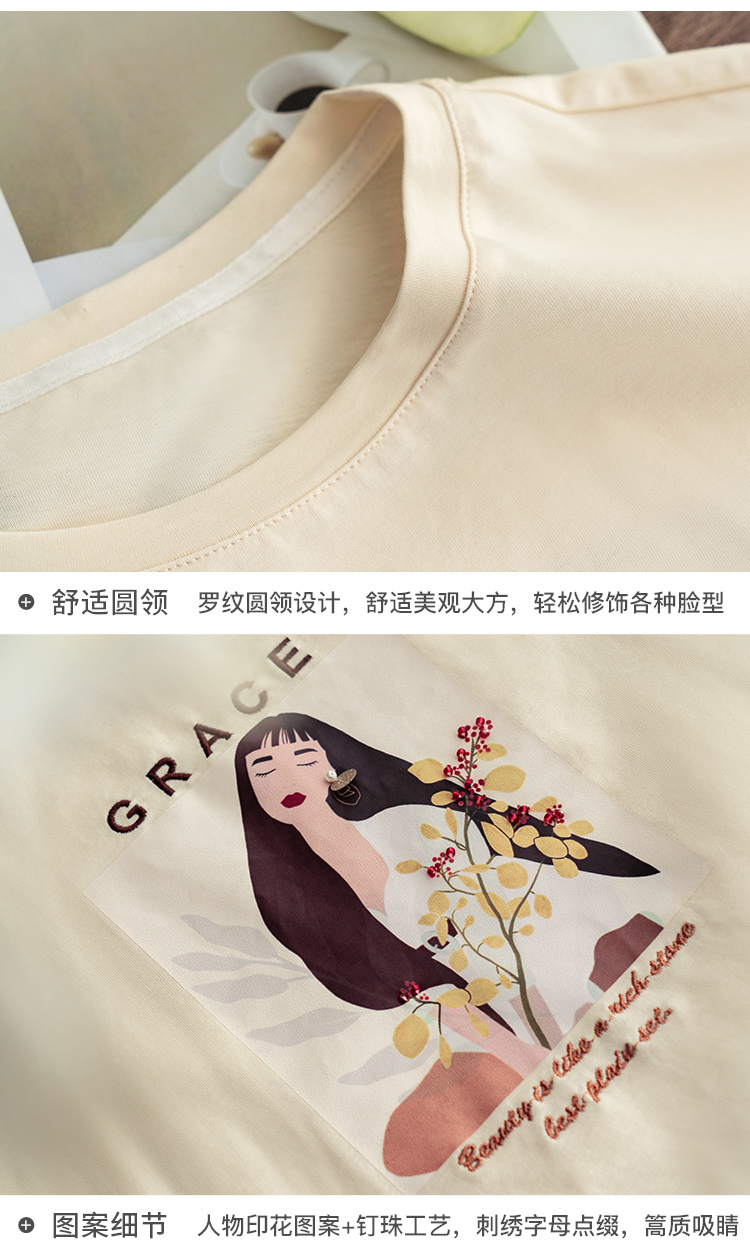 欧芮儿短袖印花t恤女2021新款圆领趣味图案钉珠时髦宽松上衣