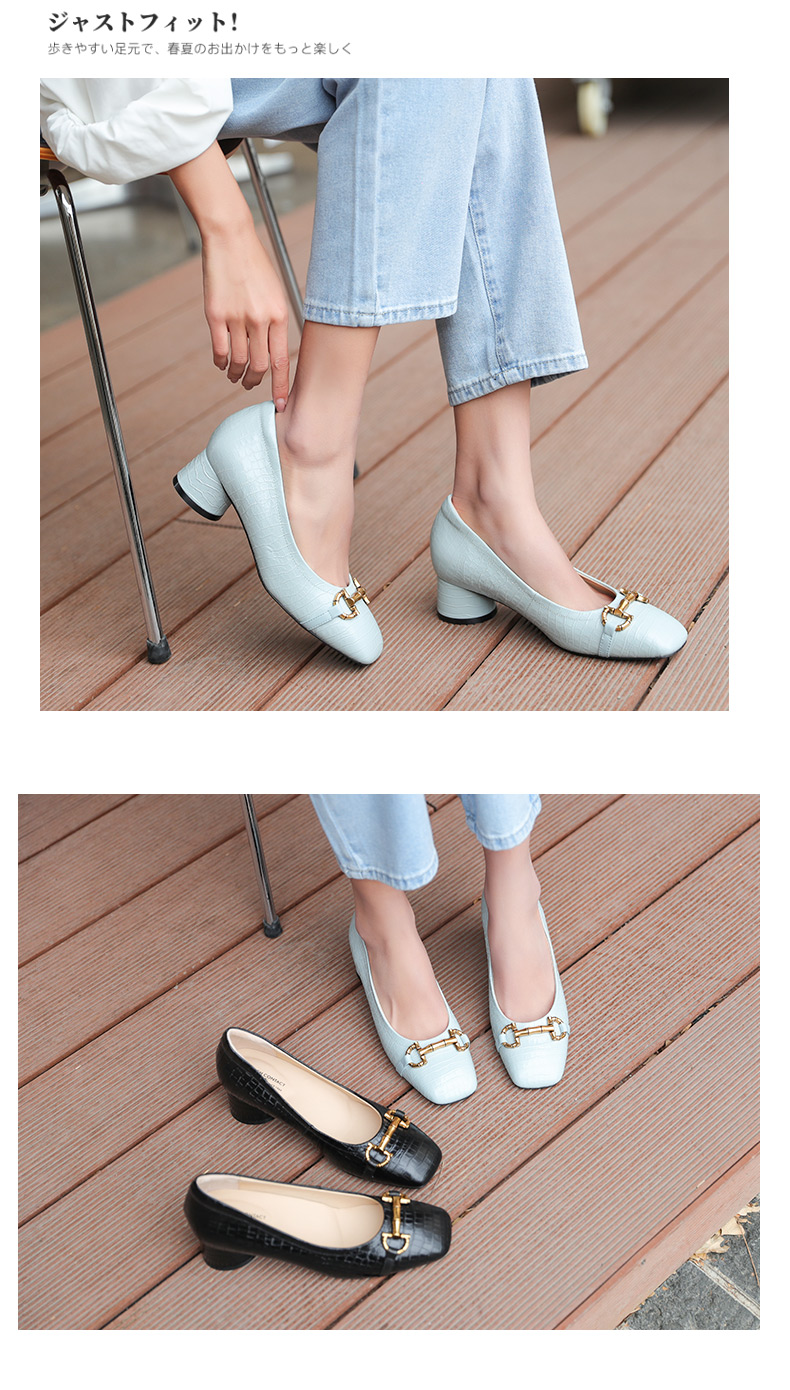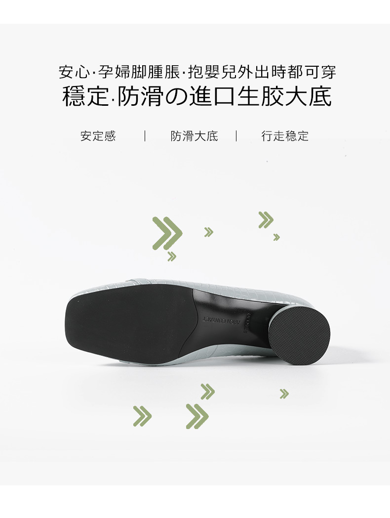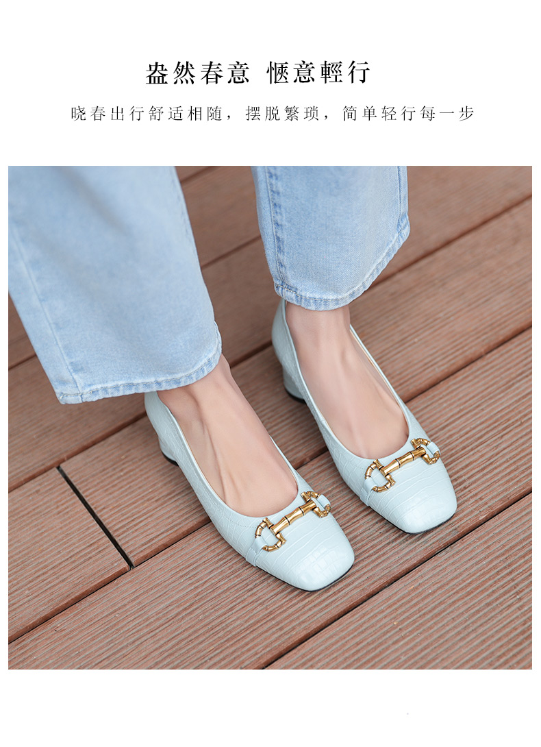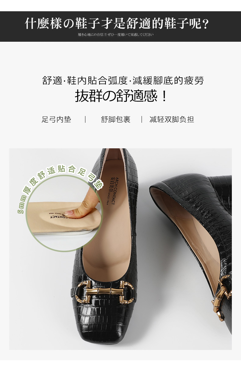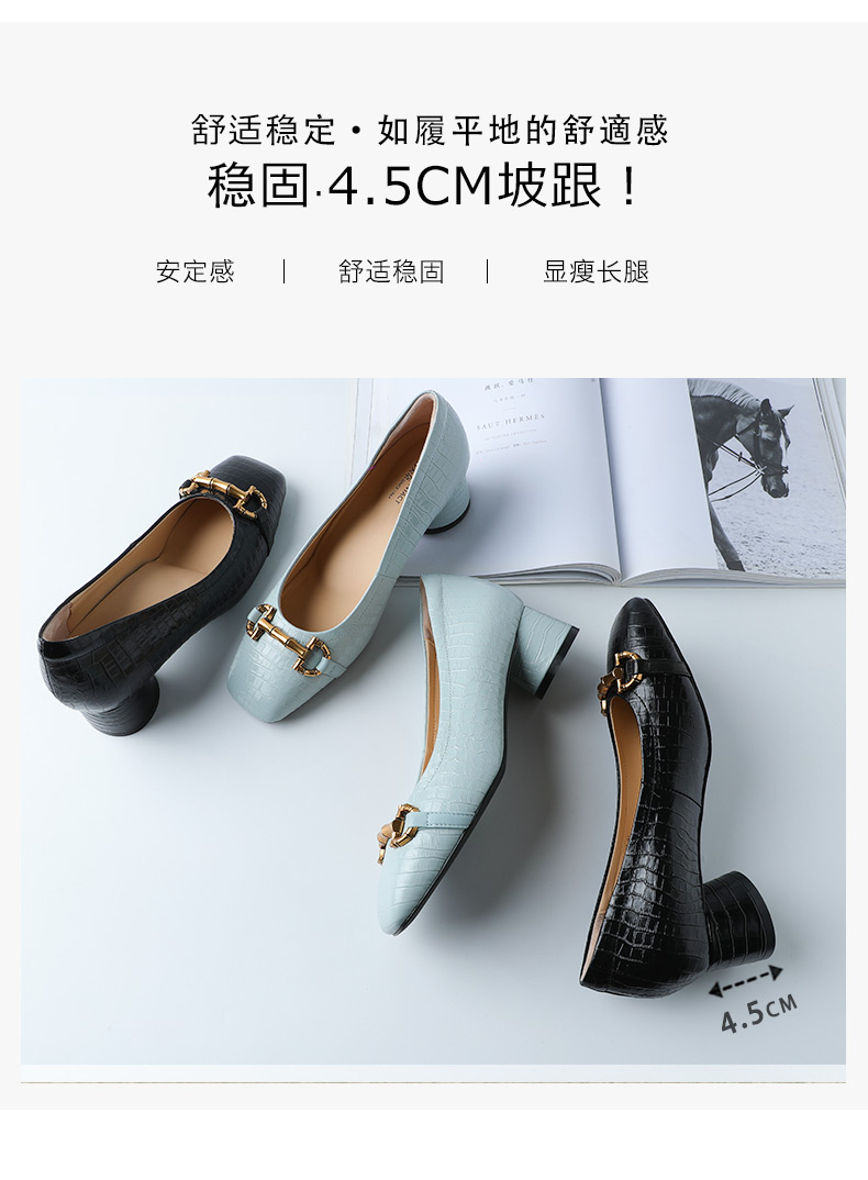 安启美奈足弓设计浅口单鞋女时尚方头粗跟法式单鞋52730