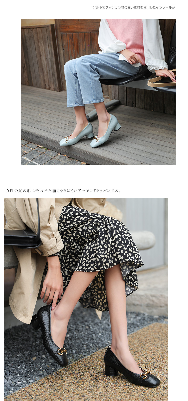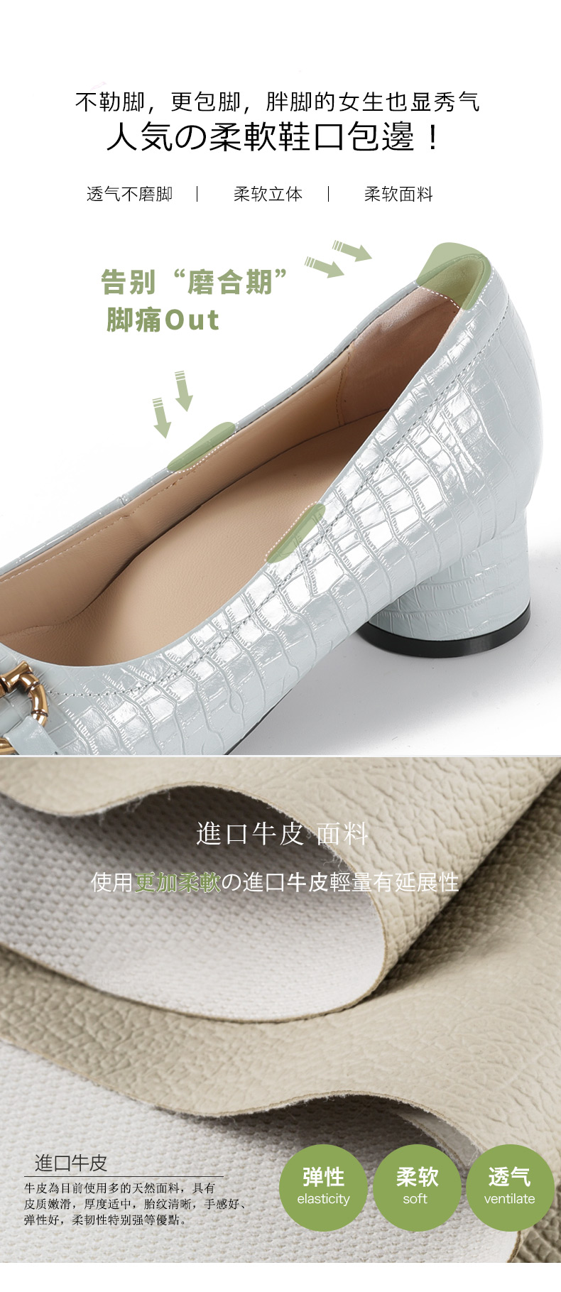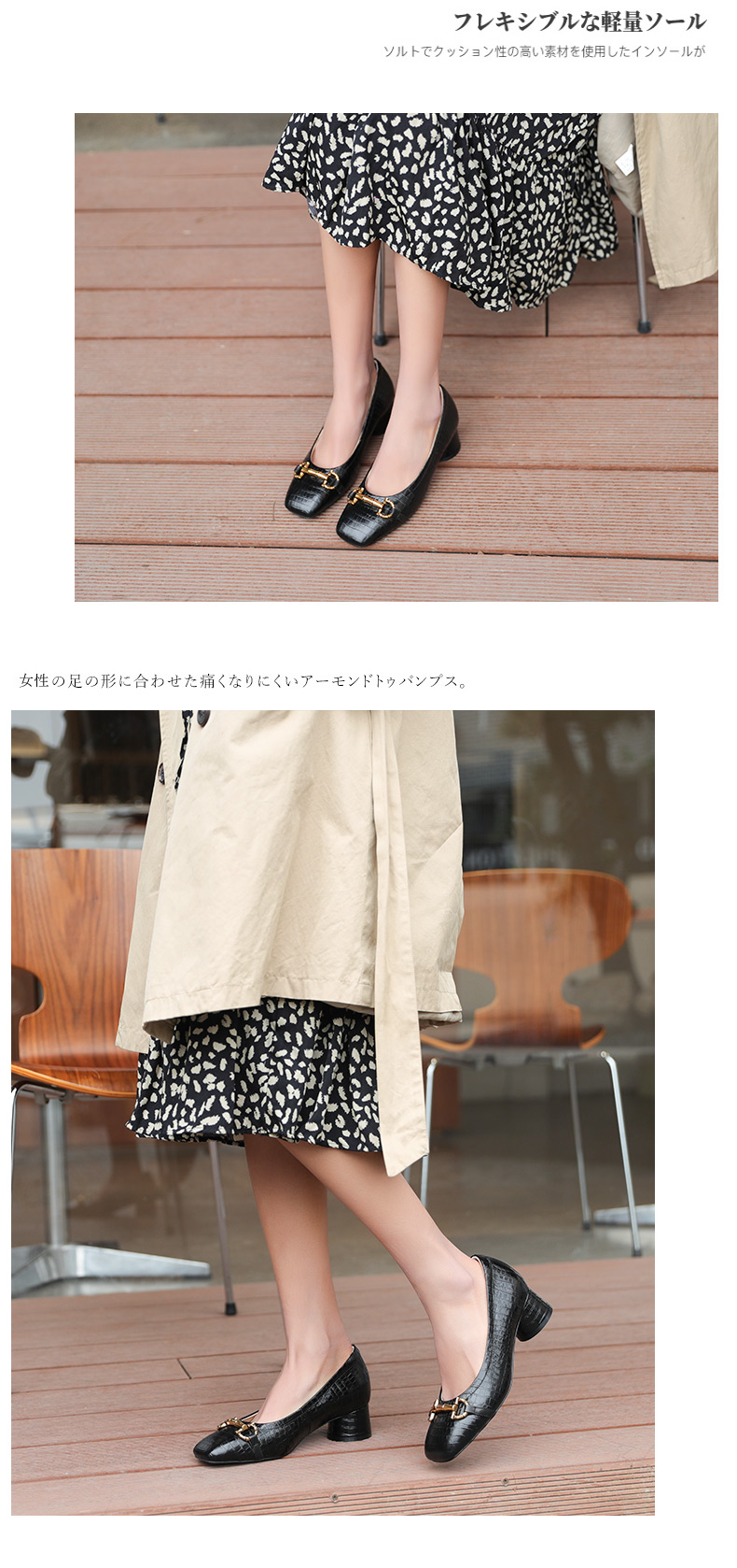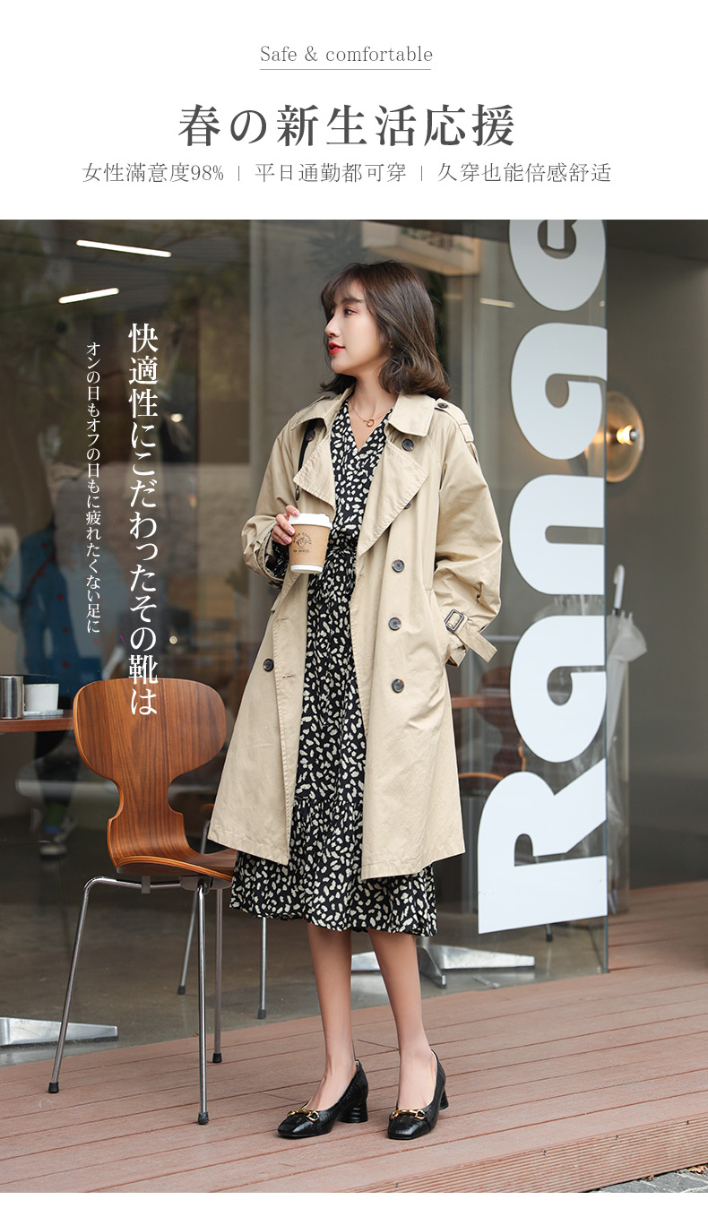 安启美奈足弓设计浅口单鞋女时尚方头粗跟法式单鞋52730