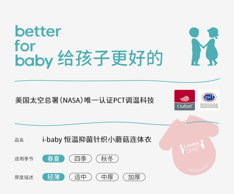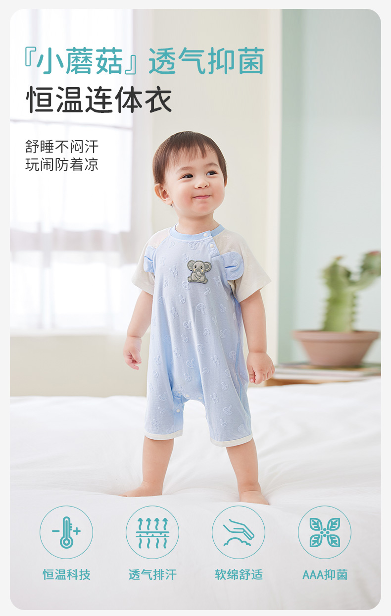 i-baby/英伦宝贝 outlast恒温抑菌针织小蘑菇连体衣 新生儿爬服春夏男女宝包屁衣儿童睡衣抑菌