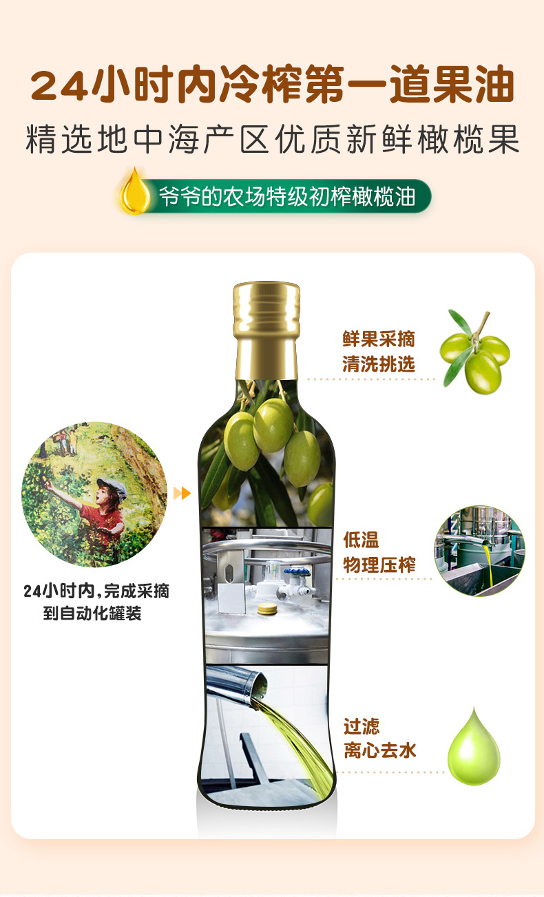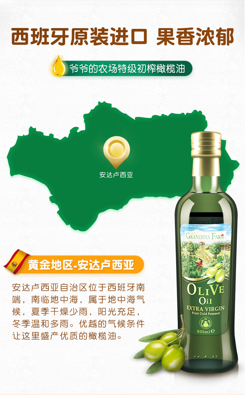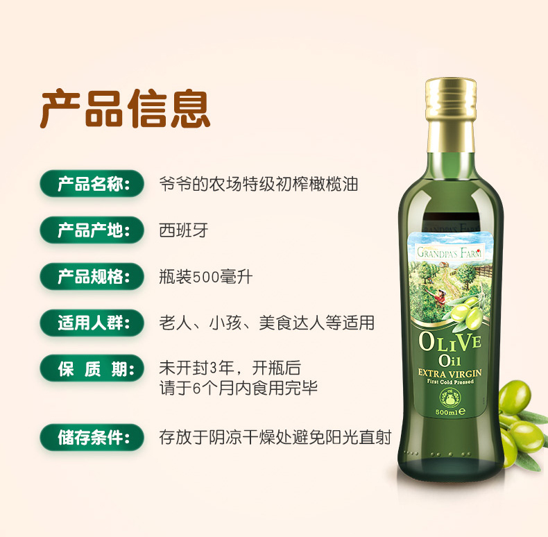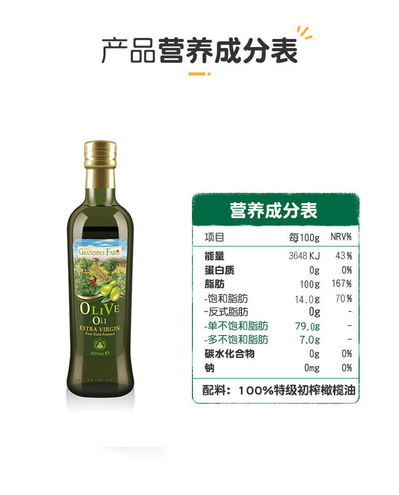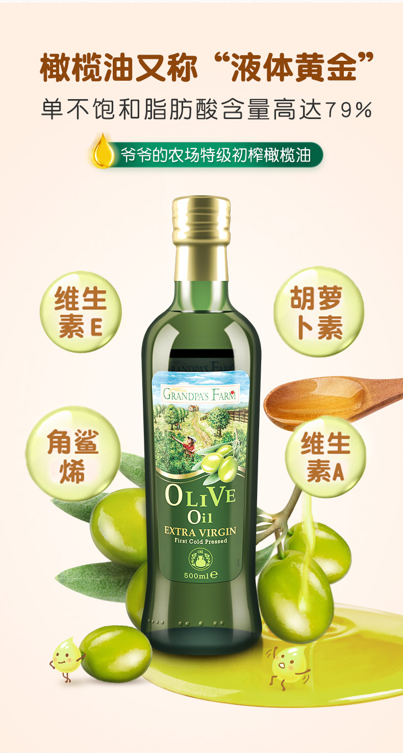 爷爷的农场宝宝特级初榨橄榄油西班牙进口低脂餐健身热炒油
