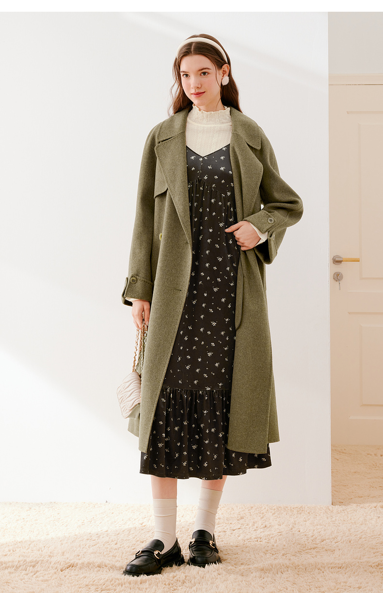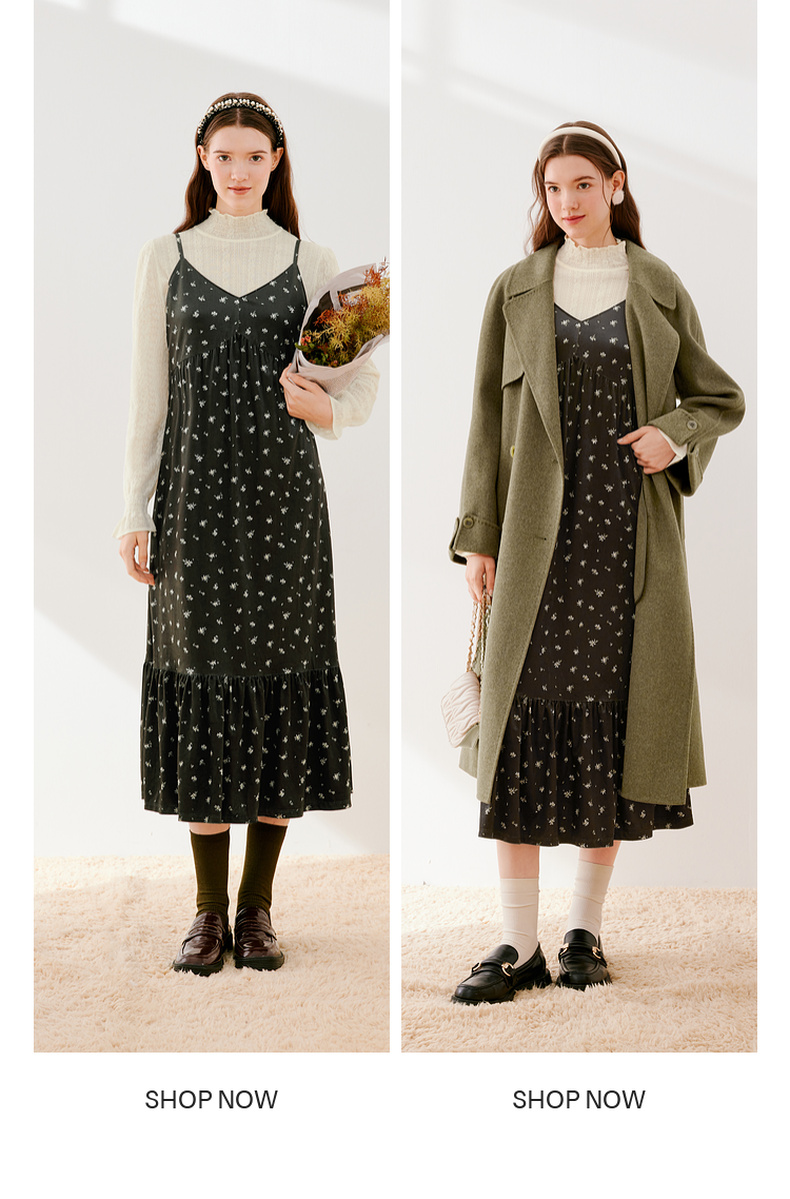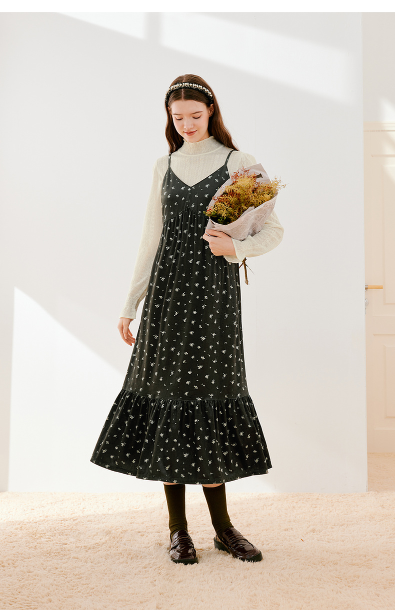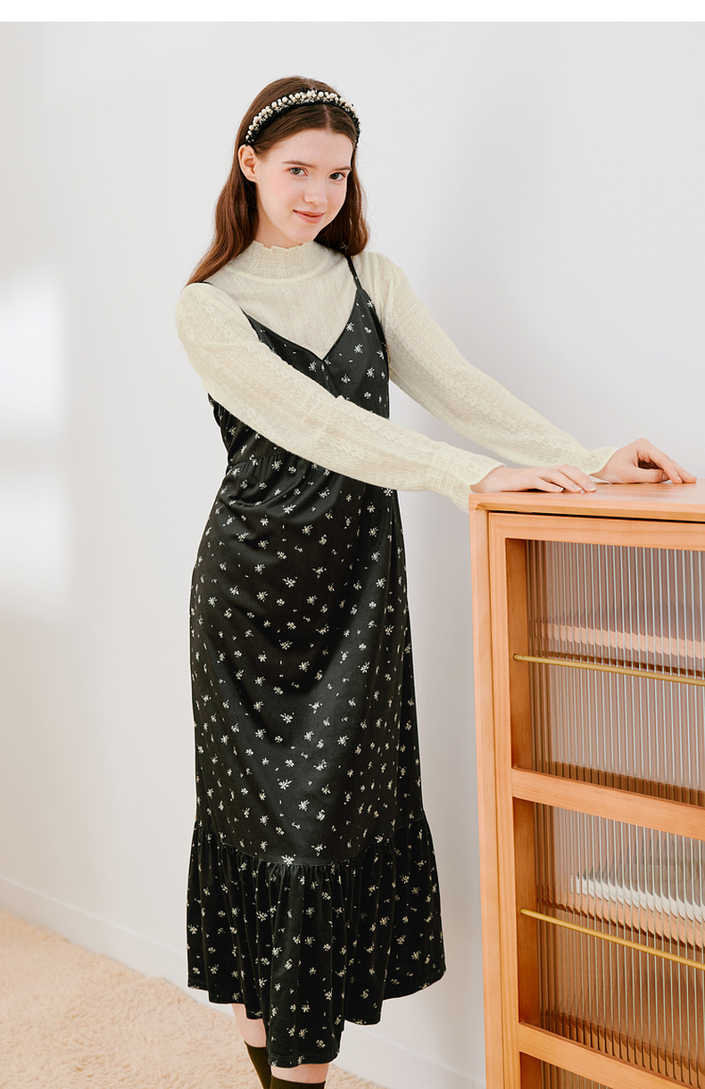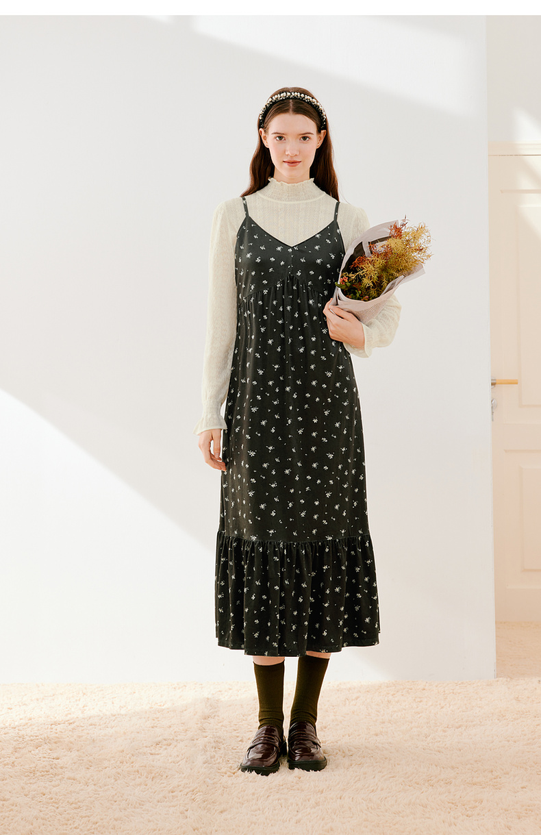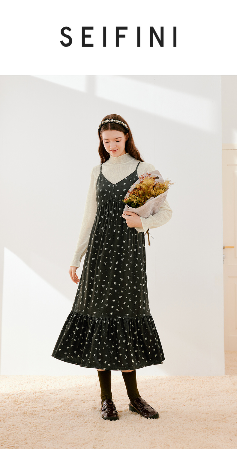 【严选】诗凡黎冬v领设计小碎花丝绒连衣裙SEA490841