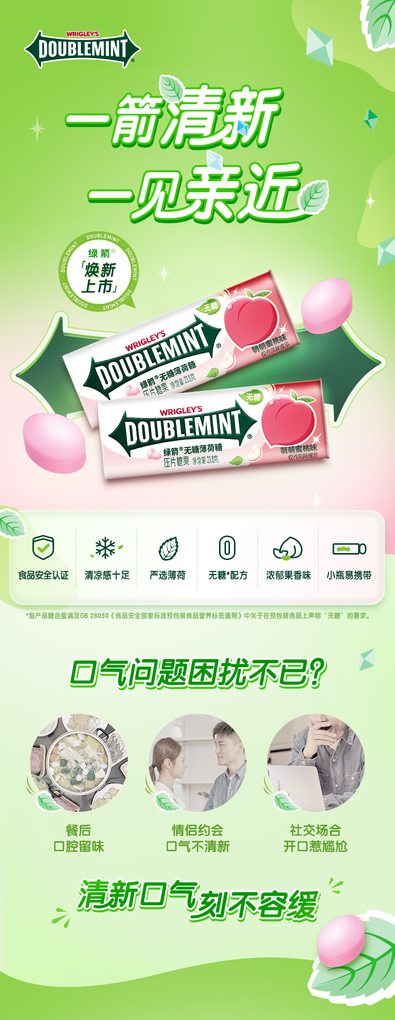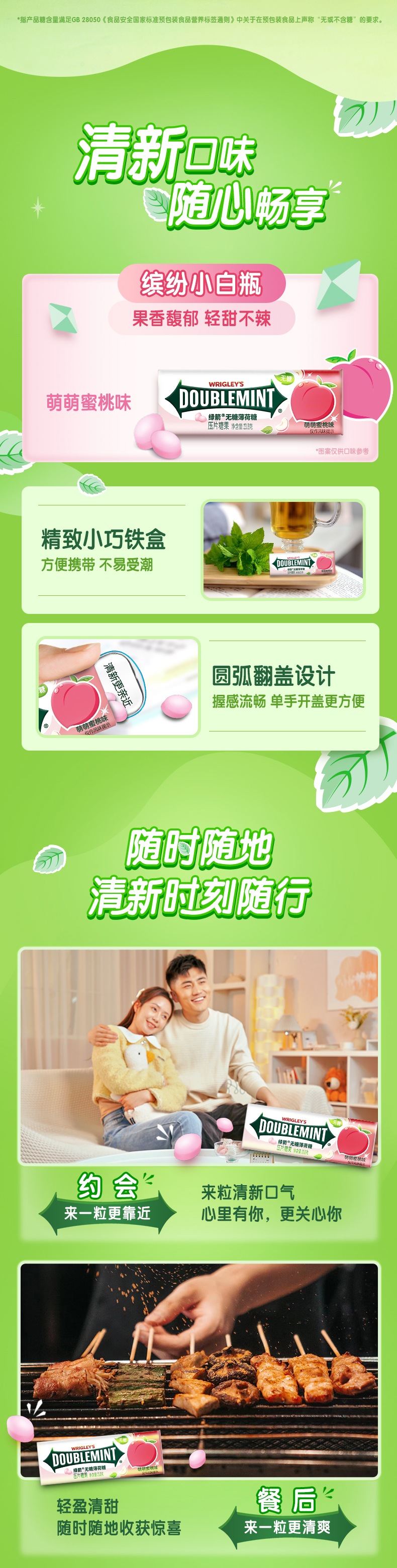 【秒杀】绿箭无糖薄荷糖萌萌蜜桃味23.8g