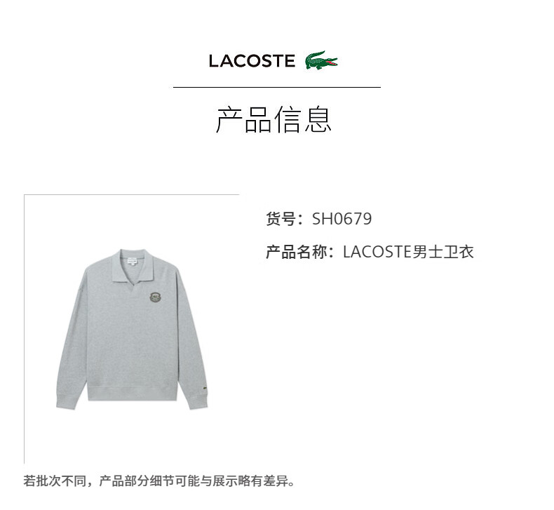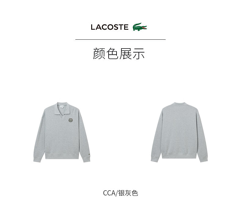 Lacoste法国鳄鱼男女同款新款时尚百搭翻领卫衣SH0679-98