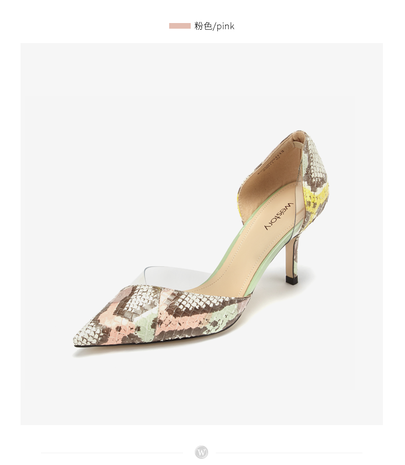 westory2019新款蛇皮纹透明拼接尖头高跟鞋女优雅气质W29AH50241