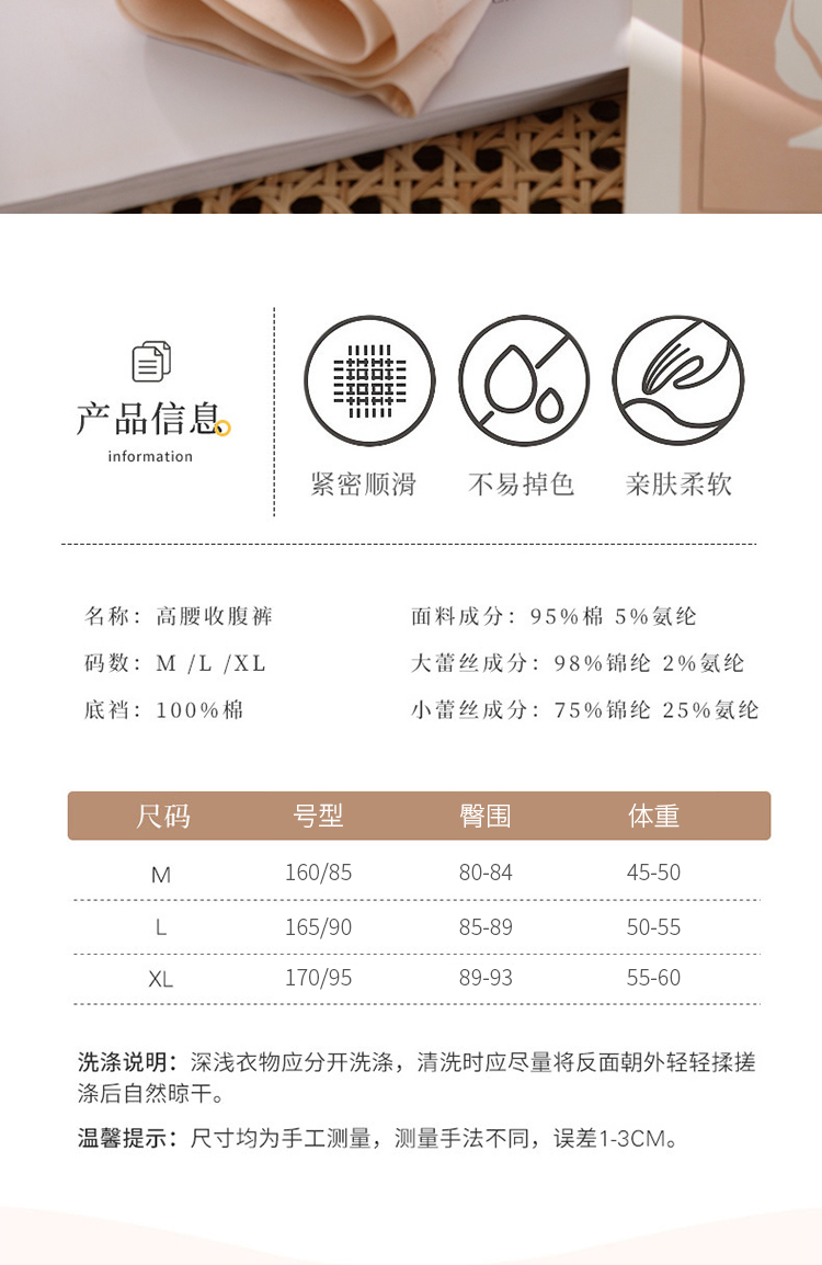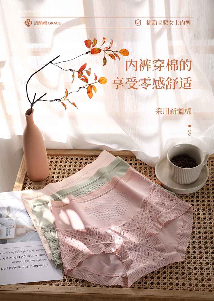 【清仓大促】洁丽雅3条装高腰纯棉女士内裤