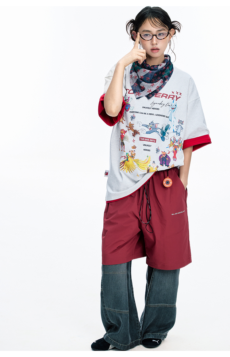 【猫和老鼠联名】BJHG不计后果辣妹拼接短裤女2025新款夏运动裤子
