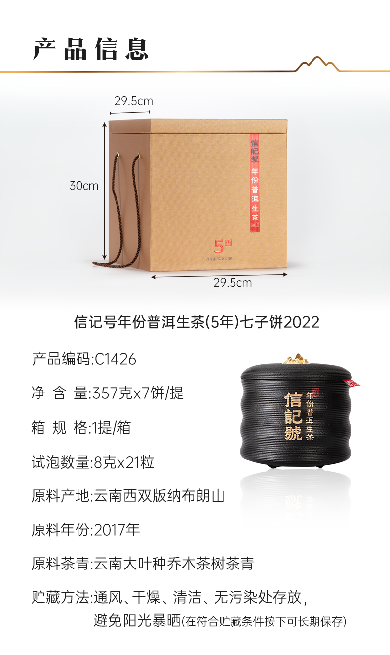 八马信记号 | 普洱生茶 信记号年份普洱生茶5年(七饼装)C1426
