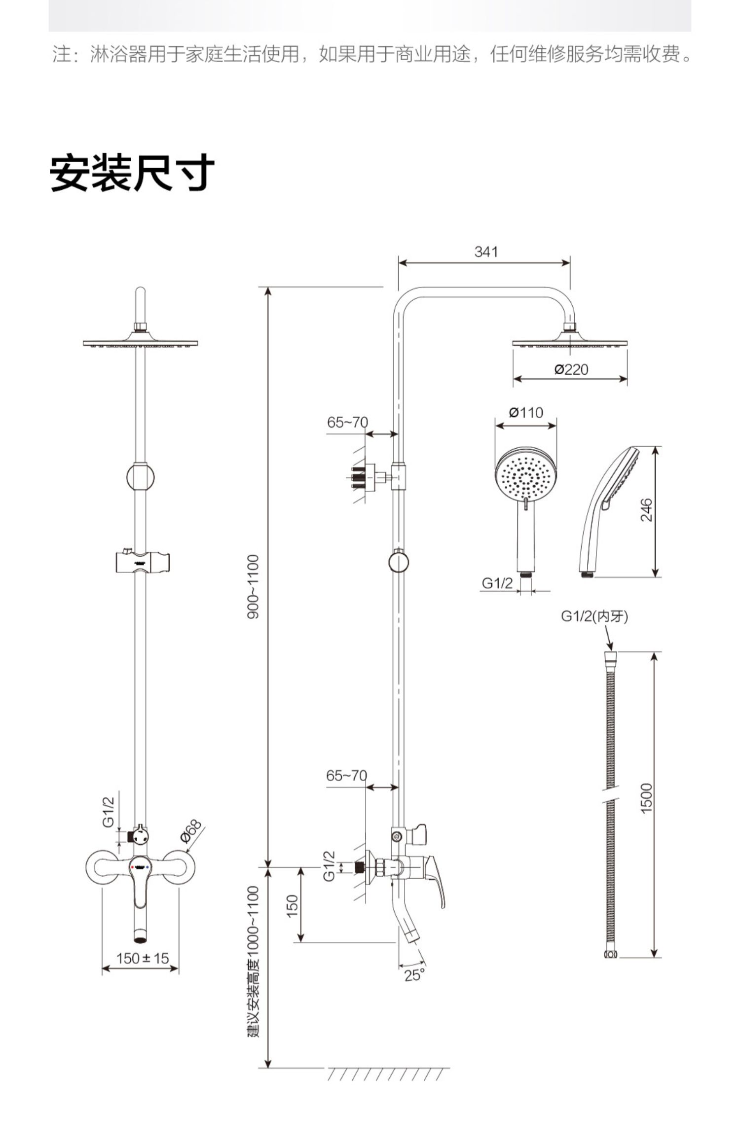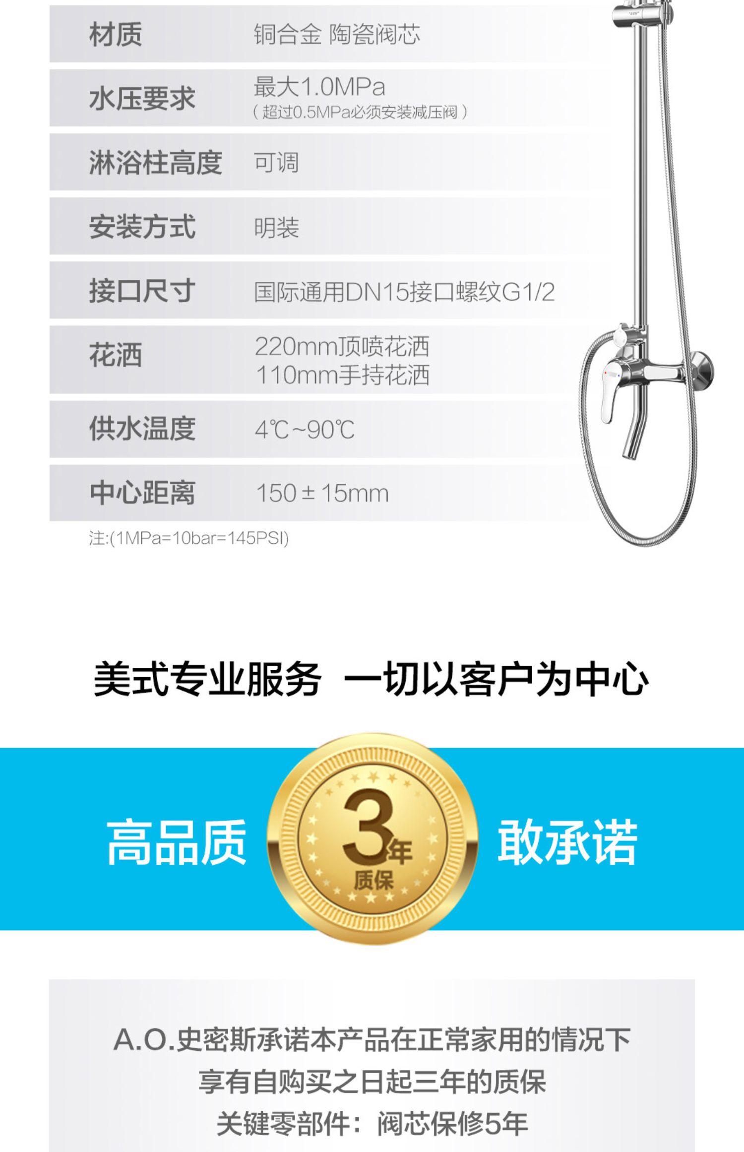 | 花洒支架类型: 带升降 | 淋浴花洒龙头类型: 双花洒龙头 |