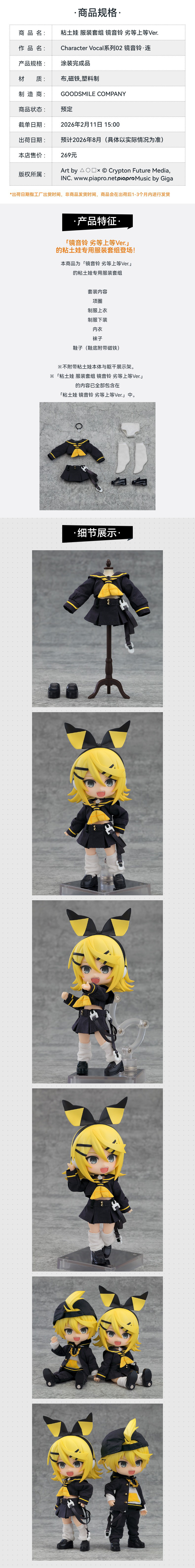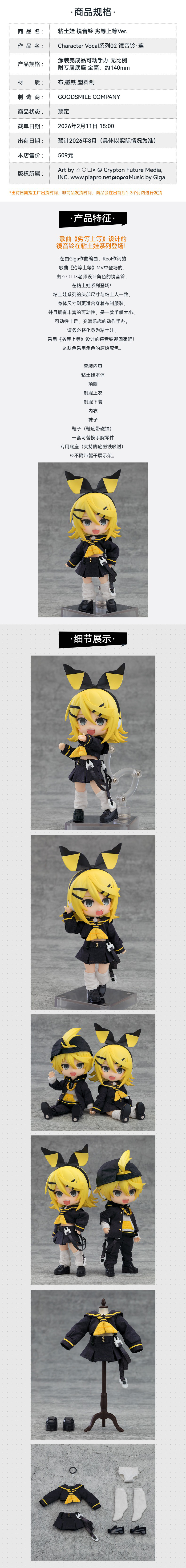 【GSC预售定金】粘土娃 镜音铃/服装套组 劣等上等Ver. 手办模玩 Character Vocal系列02 镜音铃·连