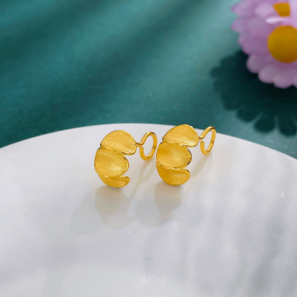 【限时克减150元】足金999.9 #清新 【精品】实心INS风极简几何椭圆拉丝凹面耳饰耳钉耳圈(AWWES00315)(预售产品下单后不退款不退货不换货不补差价