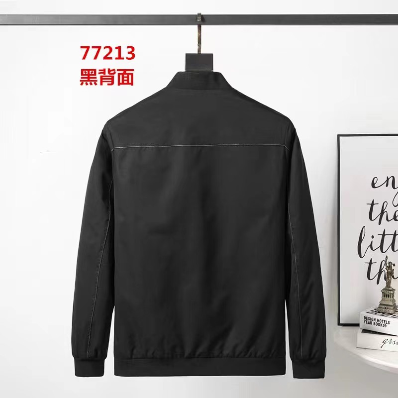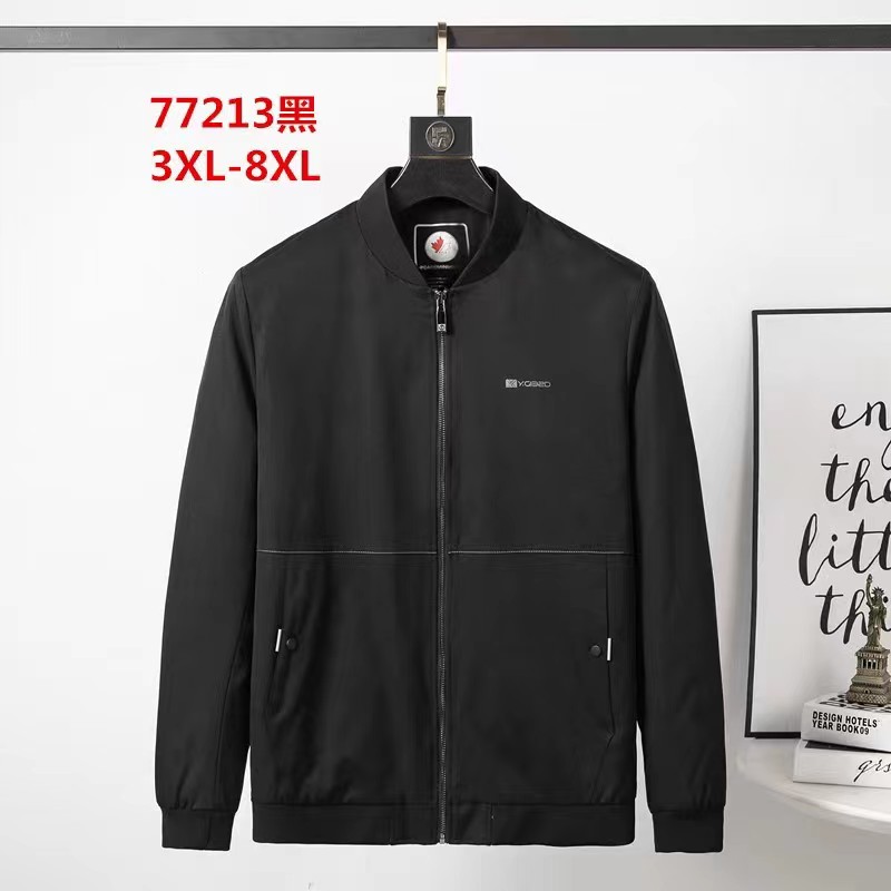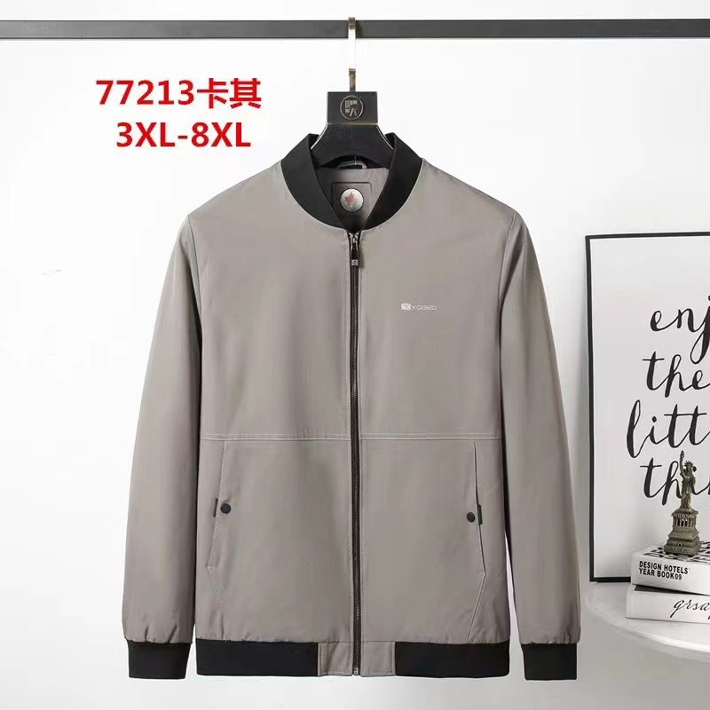 77213# 男士加大码胖了显瘦棒球领夹克衫商务绅士休闲茄克,罗纹袖口保暖穿着 黑色、卡其 3XL~6XL