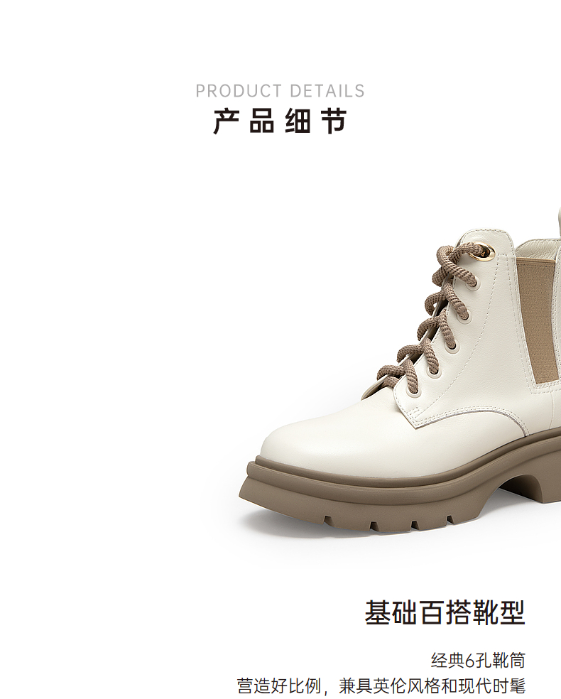 千百度厚底户外马丁靴女冬季增高真皮烟筒靴洋气小短靴子A24548021