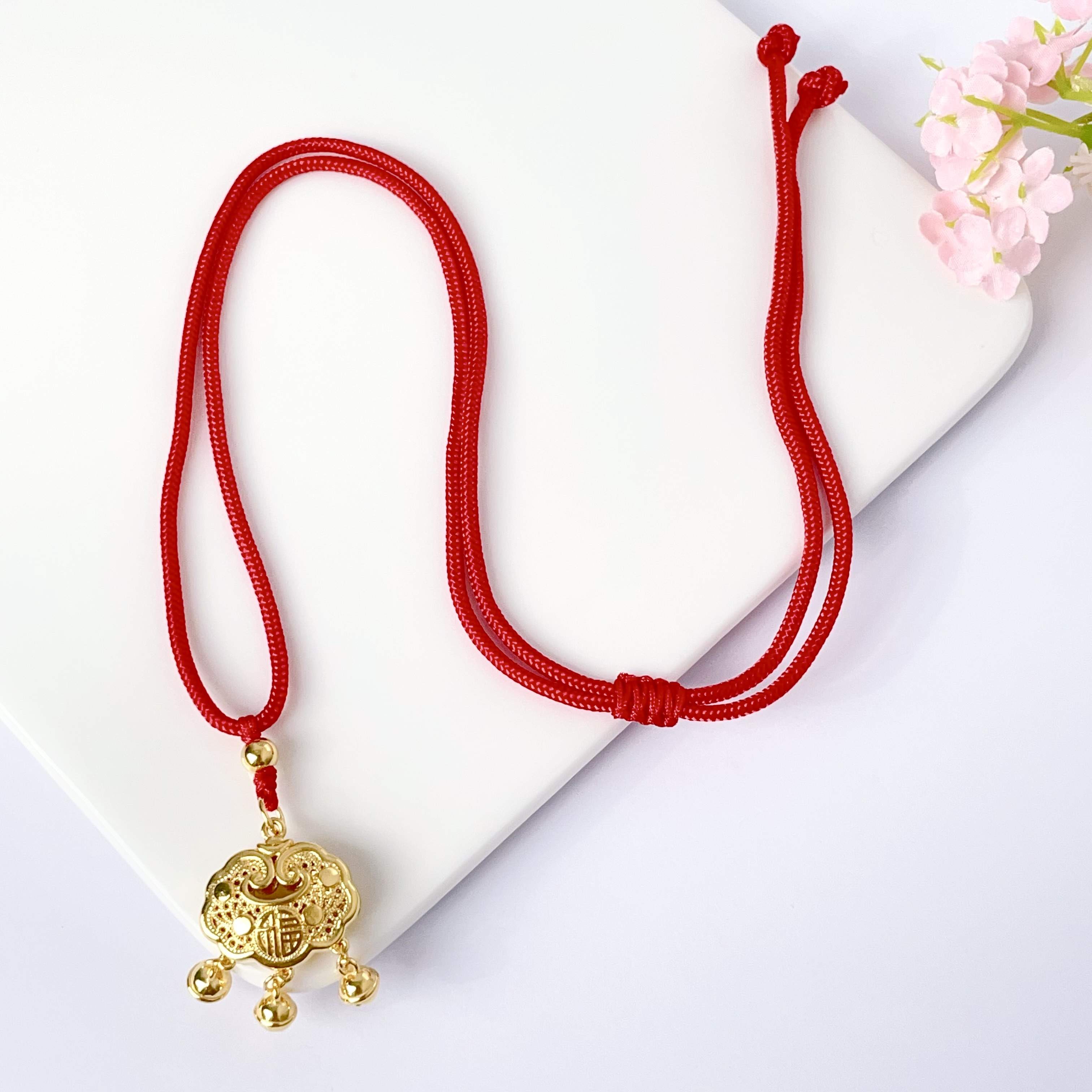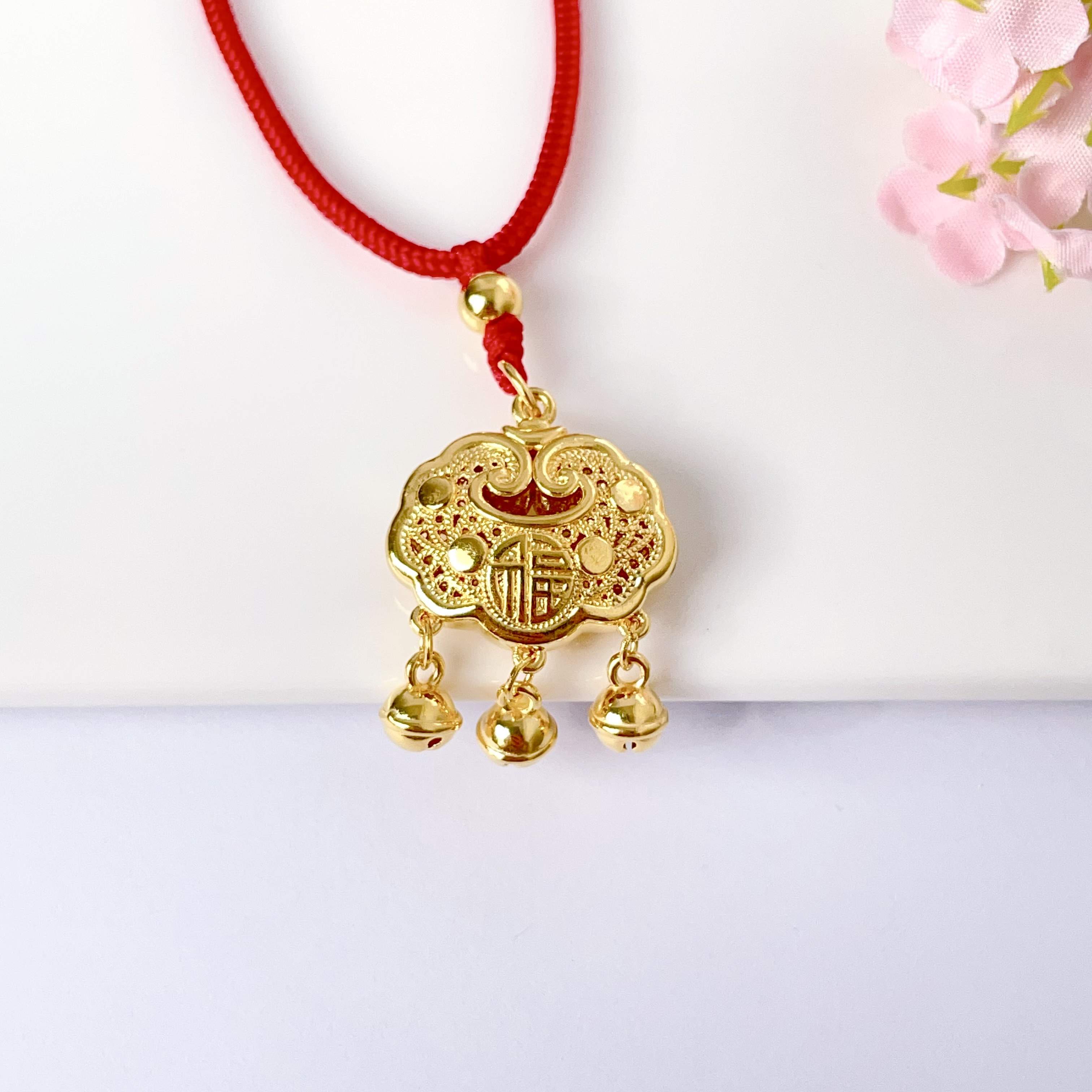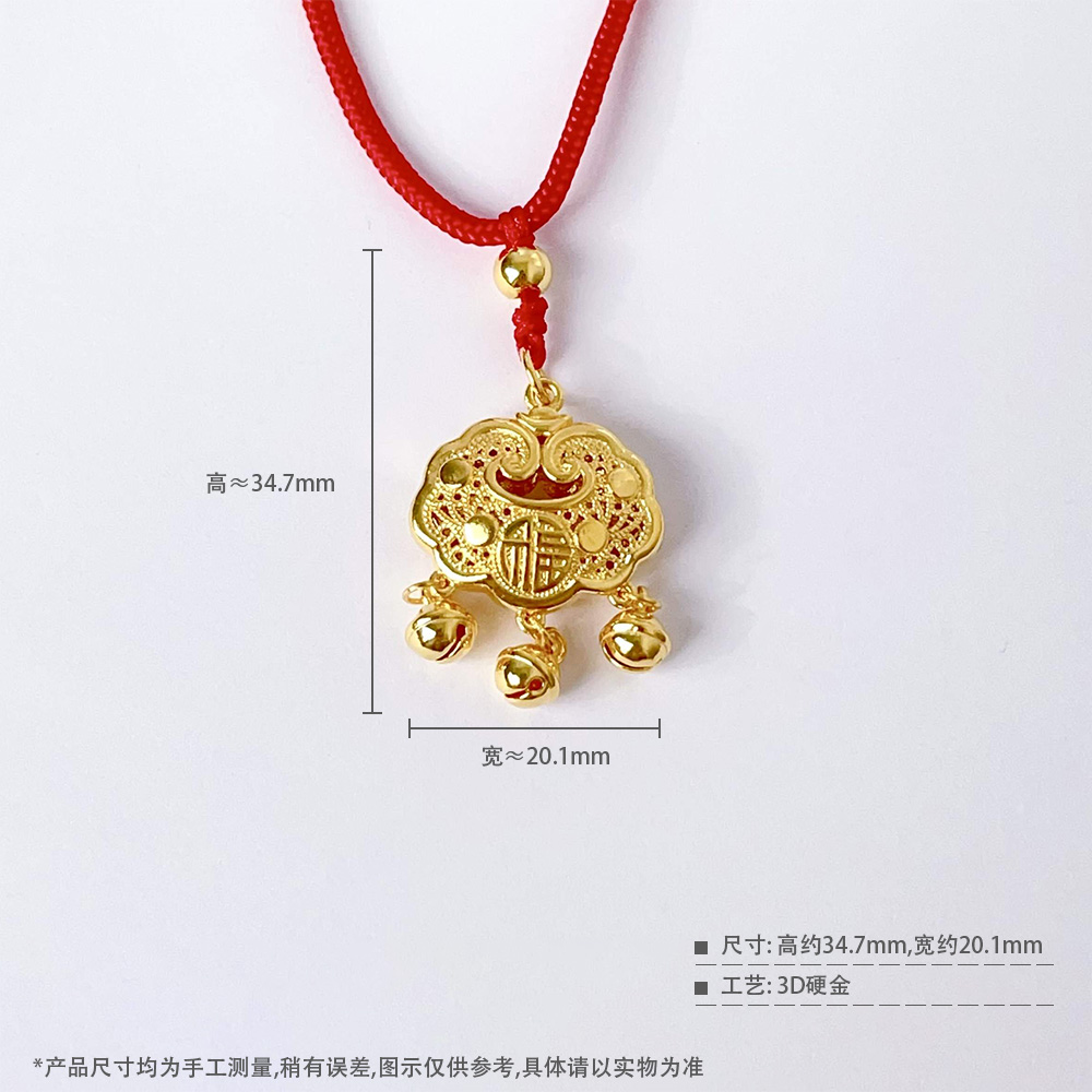 【限时7.5折】【定价黄金】足金 #小红书 3D硬金双面镂空铃铛如意福字锁包吊坠网红锁包吊坠挂绳成品项链(含珠子)(AJ3DDZ00057)(预售产品下单后不退款不退货不换货不补差价)