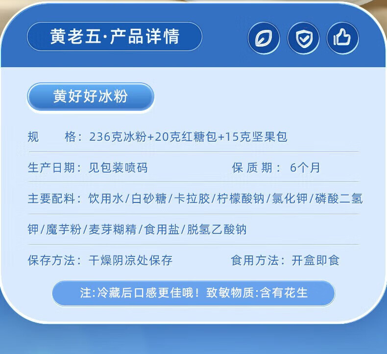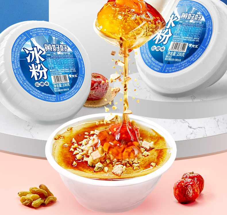 黄老五红糖味凉糕开盖即食四川特产成都特色名小吃 红糖味冰粉276g*6
