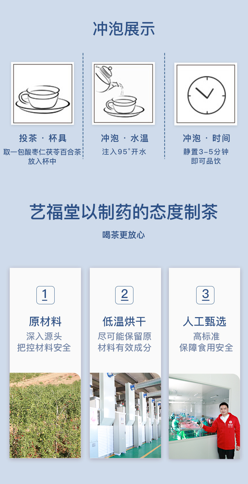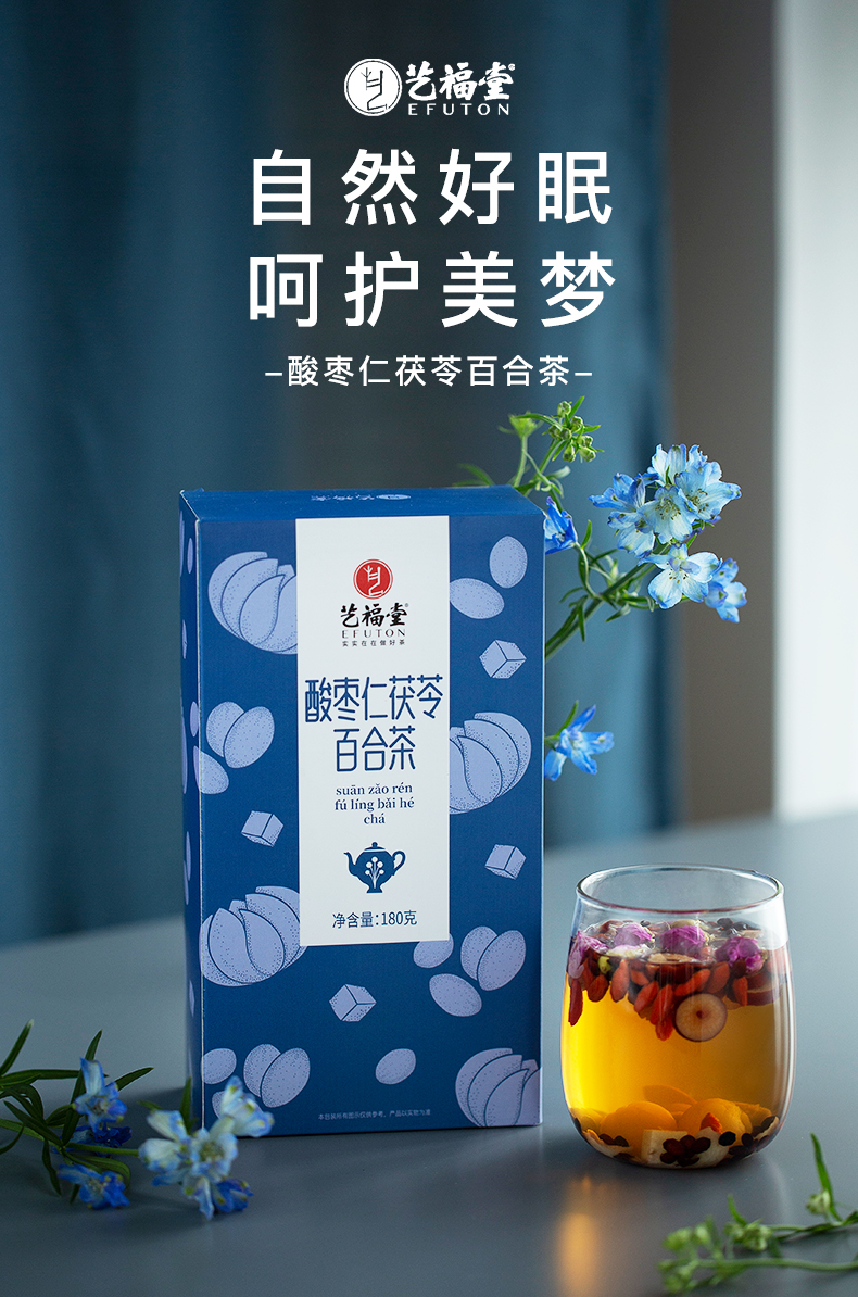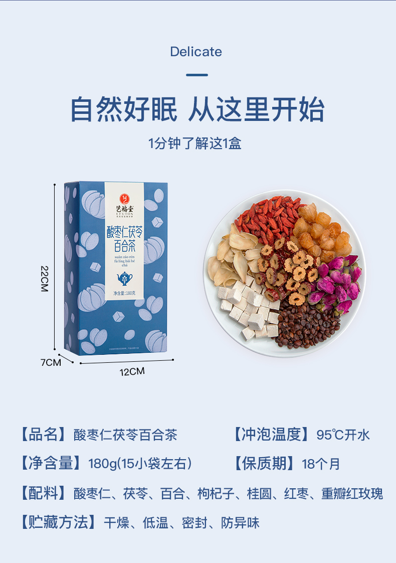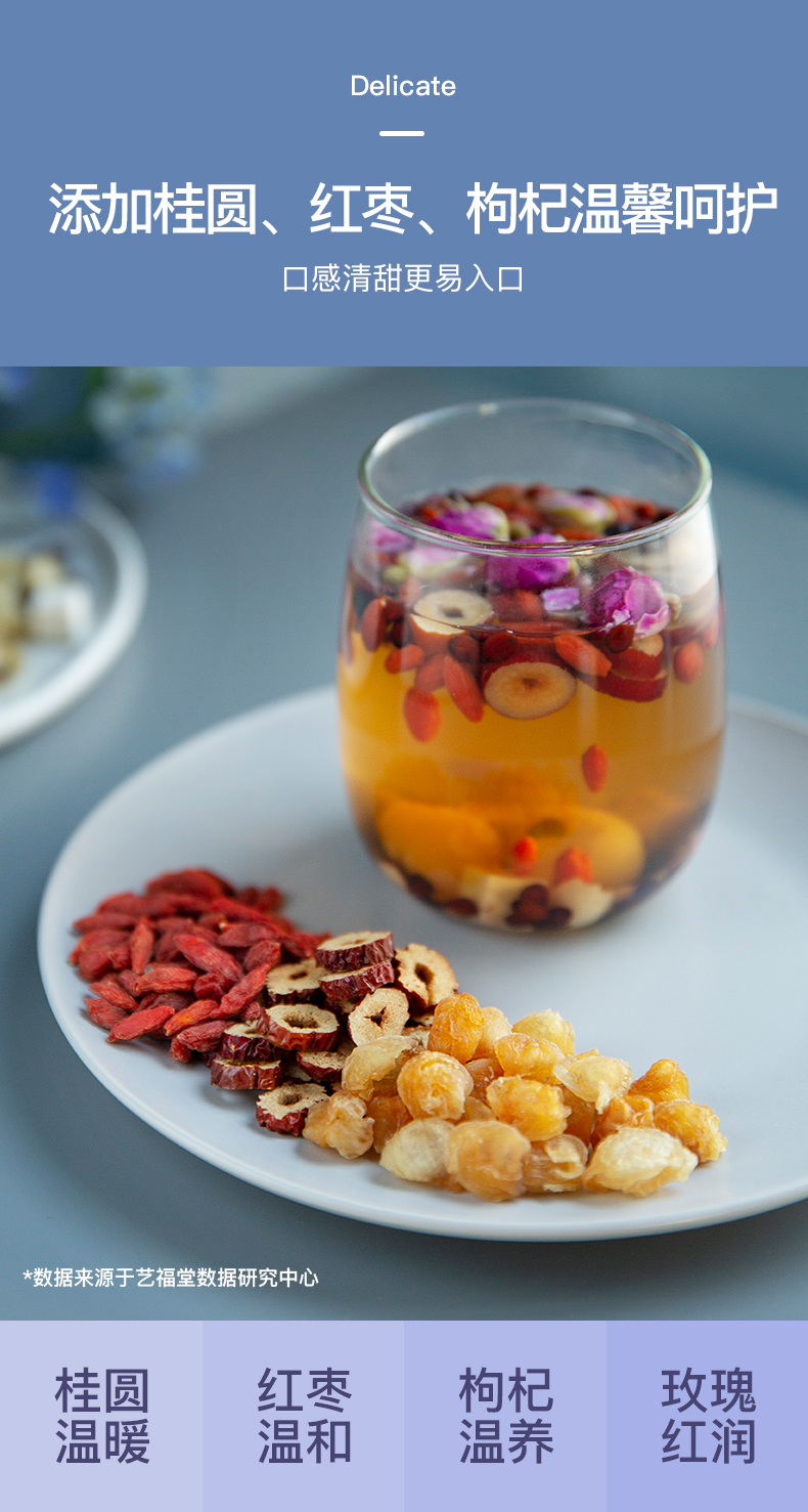 【专区3件83折】艺福堂 酸枣仁茯苓百合茶 含红枣桂圆枸杞玫瑰花 180g/盒