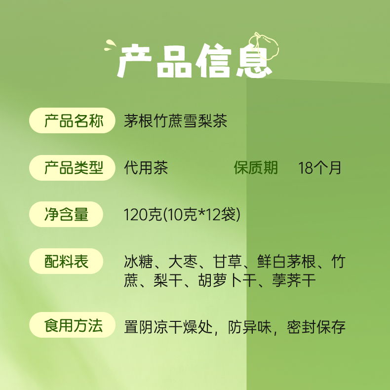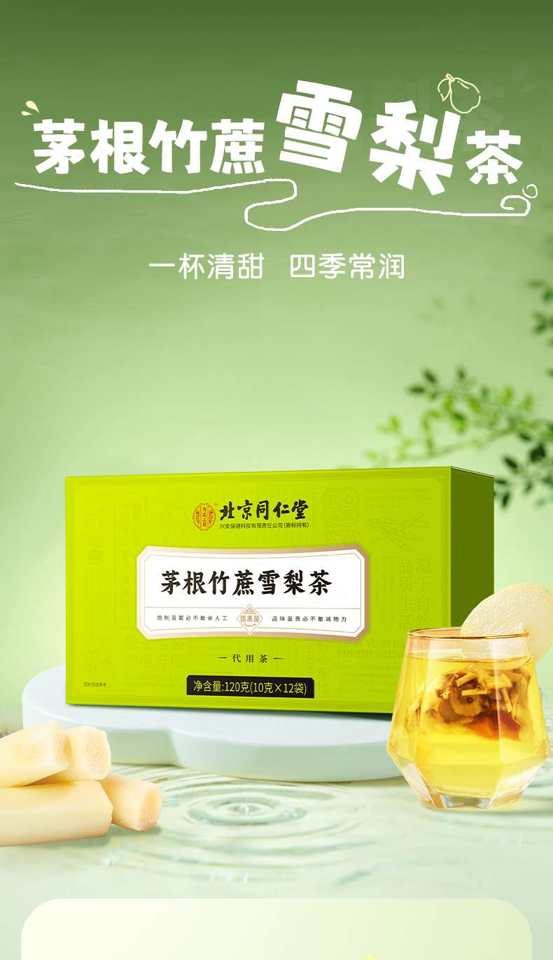 北京同仁堂内廷上用茅根竹蔗雪梨茶 甘蔗马蹄水果茶 养生凉茶10克*12袋/盒