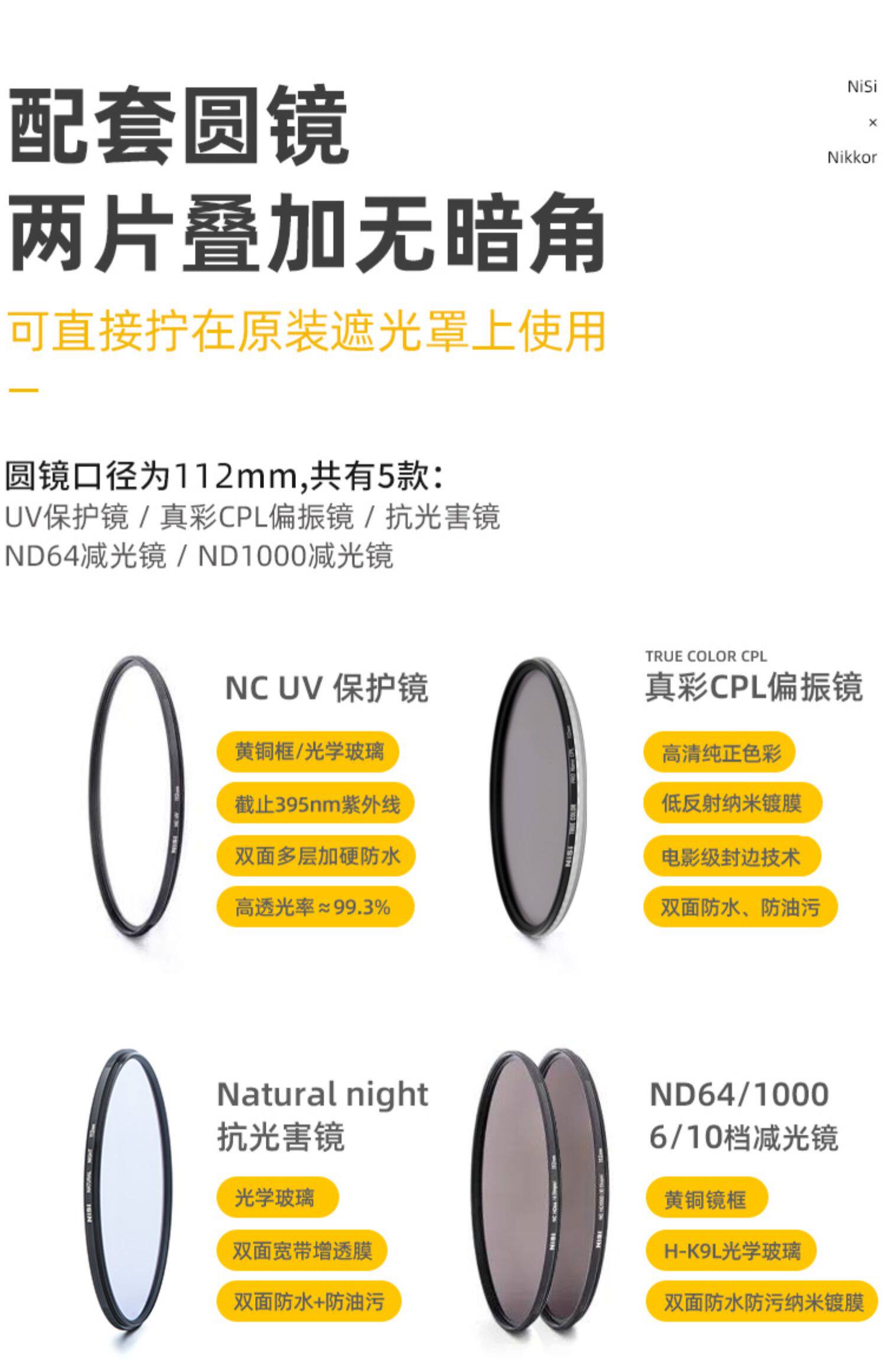 耐司(NiSi)uv镜 cpl偏振镜 nd减光镜 抗光害镜112mm滤镜尼康Z 14-24mm f2.8S专用