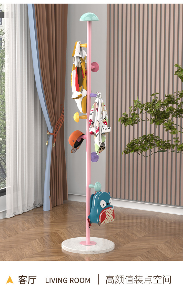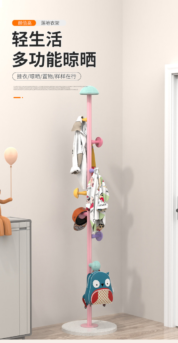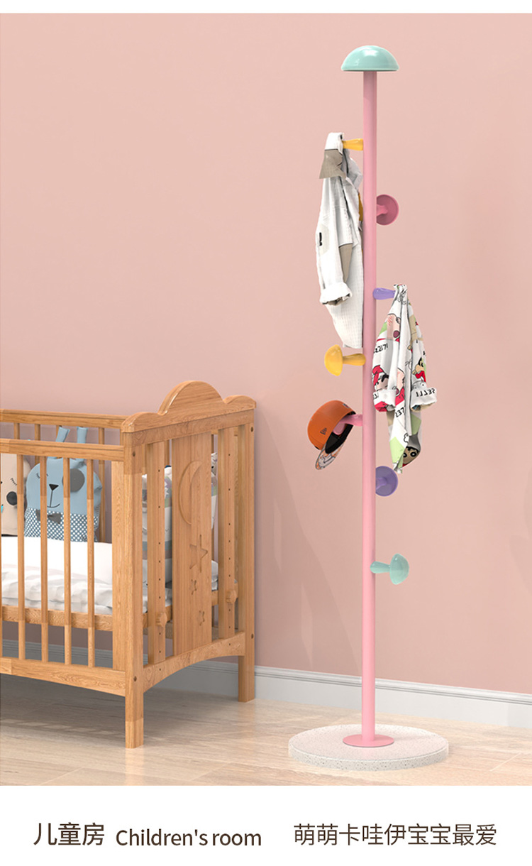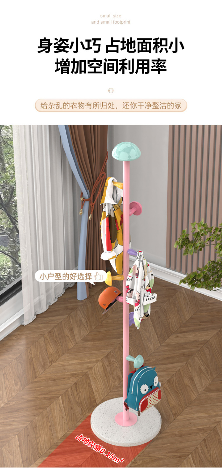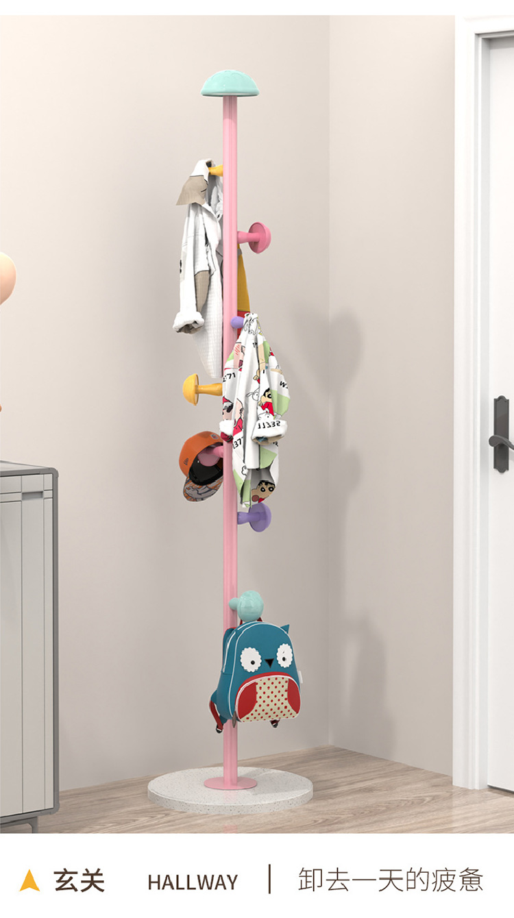 【儿童蘑菇杆挂衣架】落地衣帽架儿童房装饰晾衣架 加粗彩色小户型门后收纳衣服架