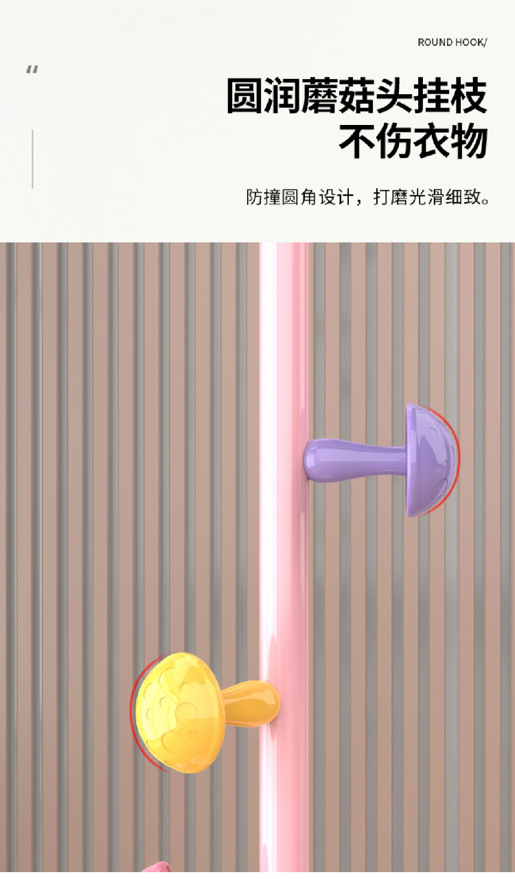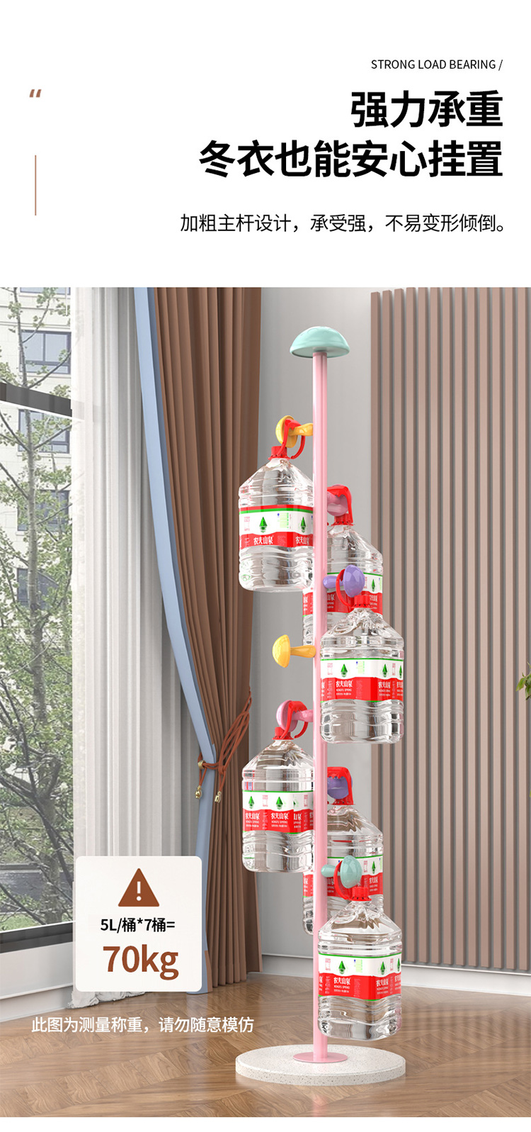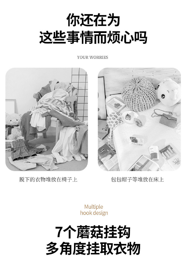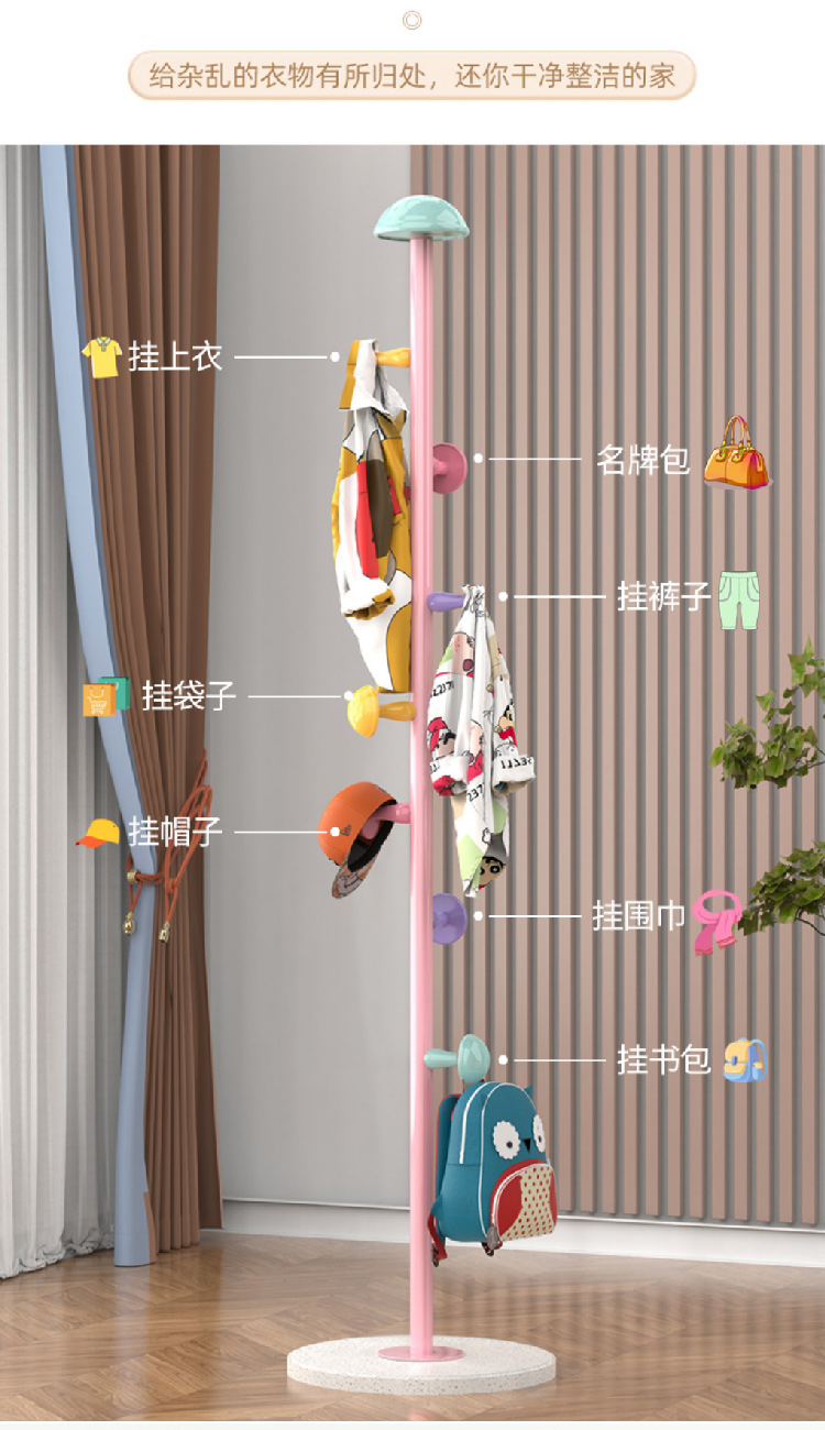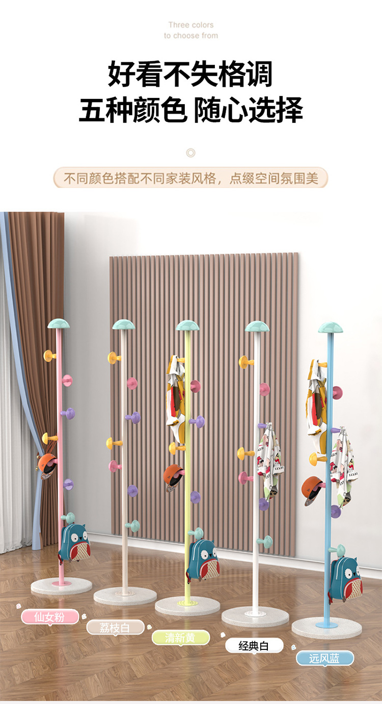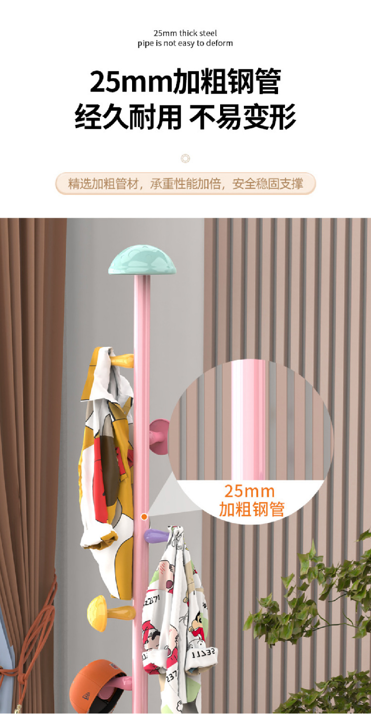 【儿童蘑菇杆挂衣架】落地衣帽架儿童房装饰晾衣架 加粗彩色小户型门后收纳衣服架