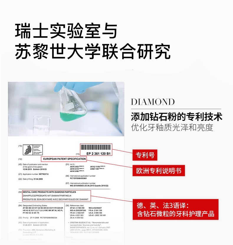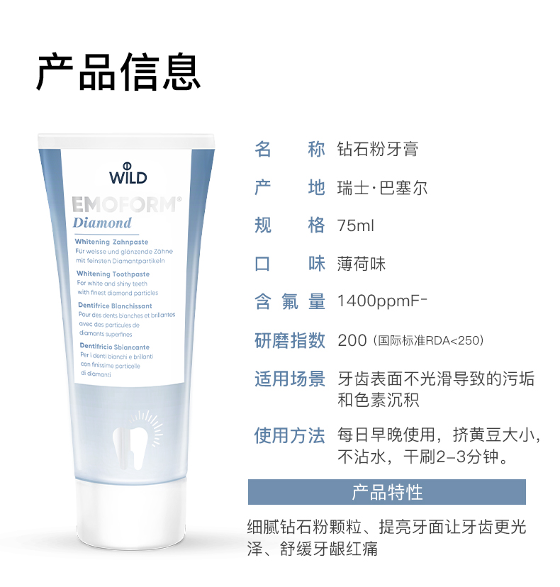【马泷专属 】瑞士原装进口怀尔德Dr.wild 钻石粉牙膏