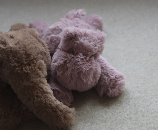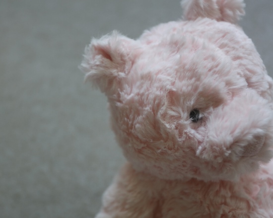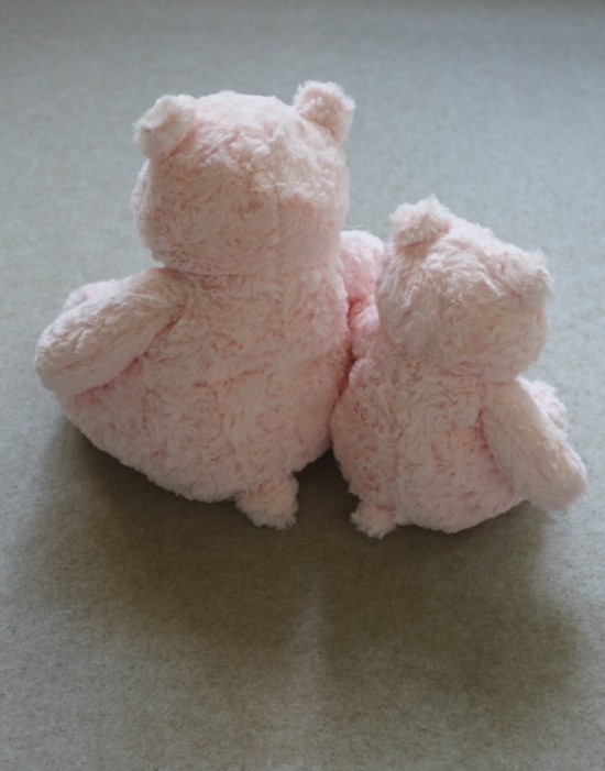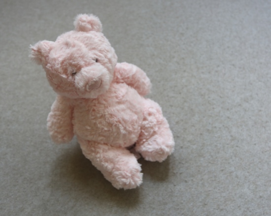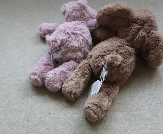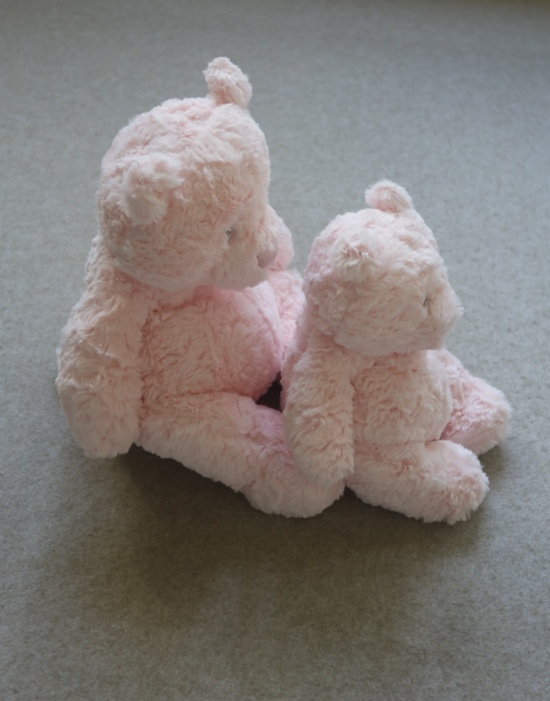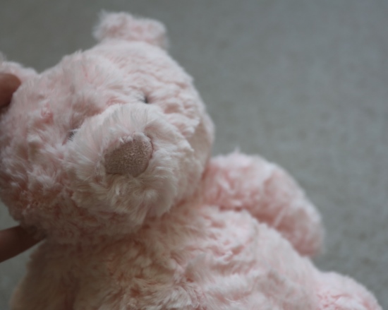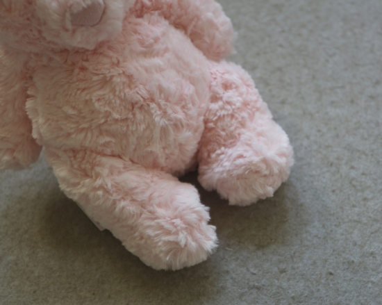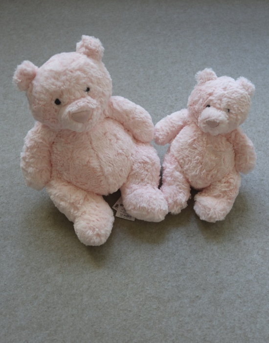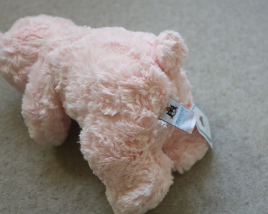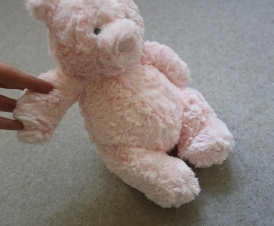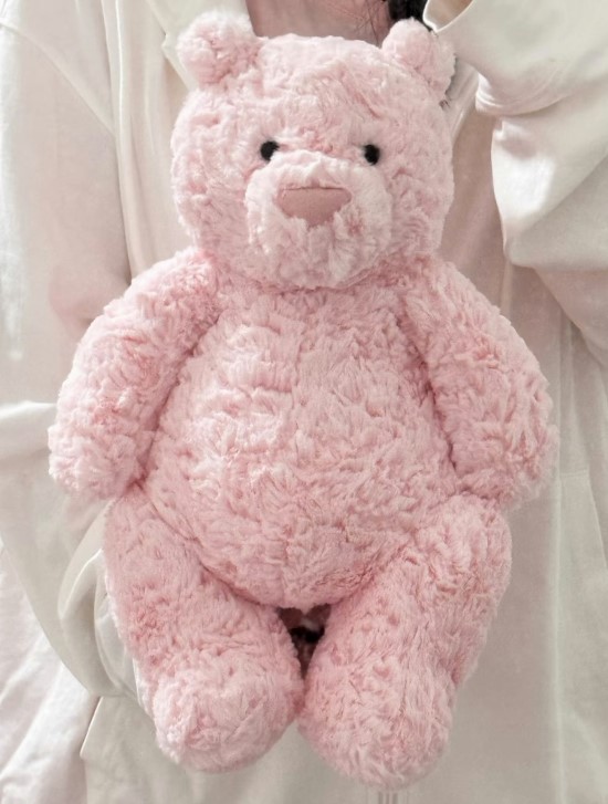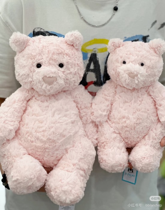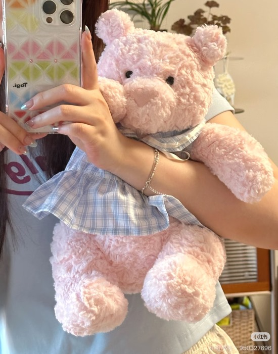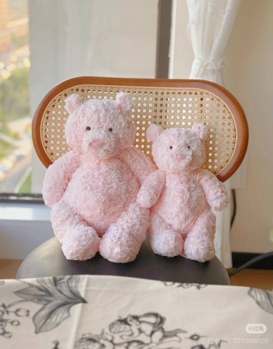 她是巴塞罗熊的表妹 黑色豆丁眼睛 浅粉色的毛绒绒 屁股里面有填充颗粒