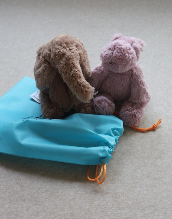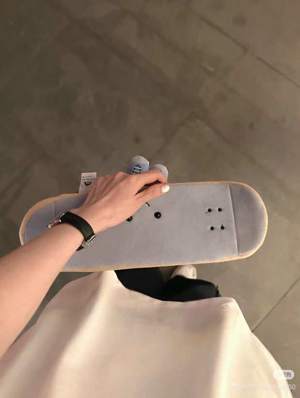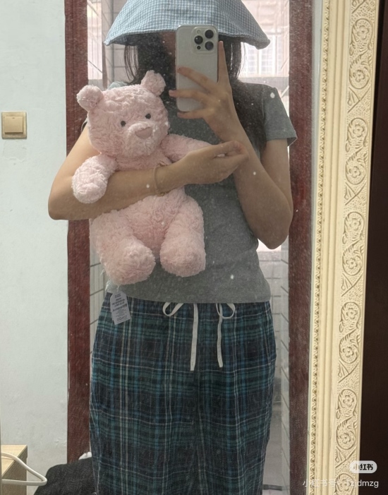整体是反绒布的质感 个头并不大 就差不多妞子手的两拃长吧