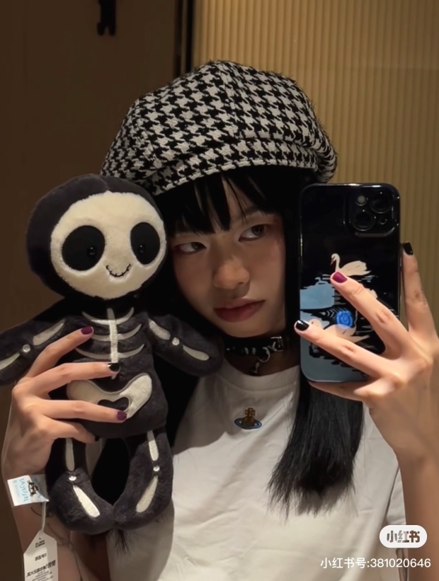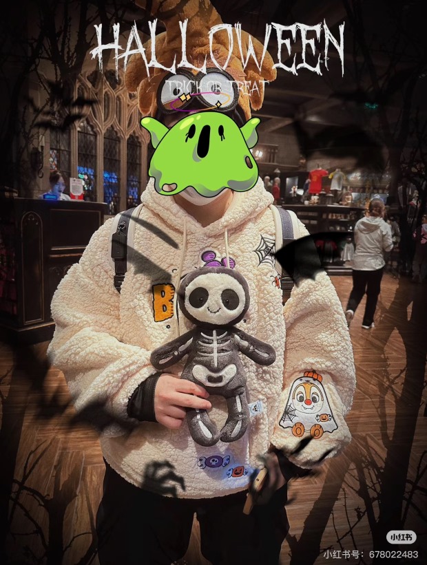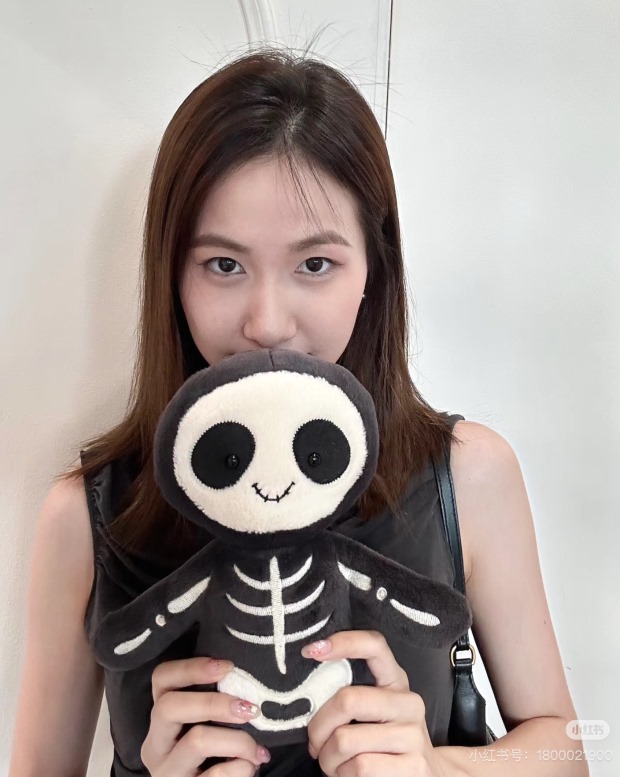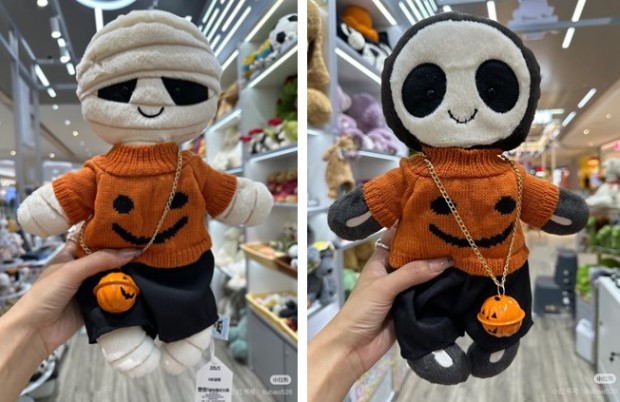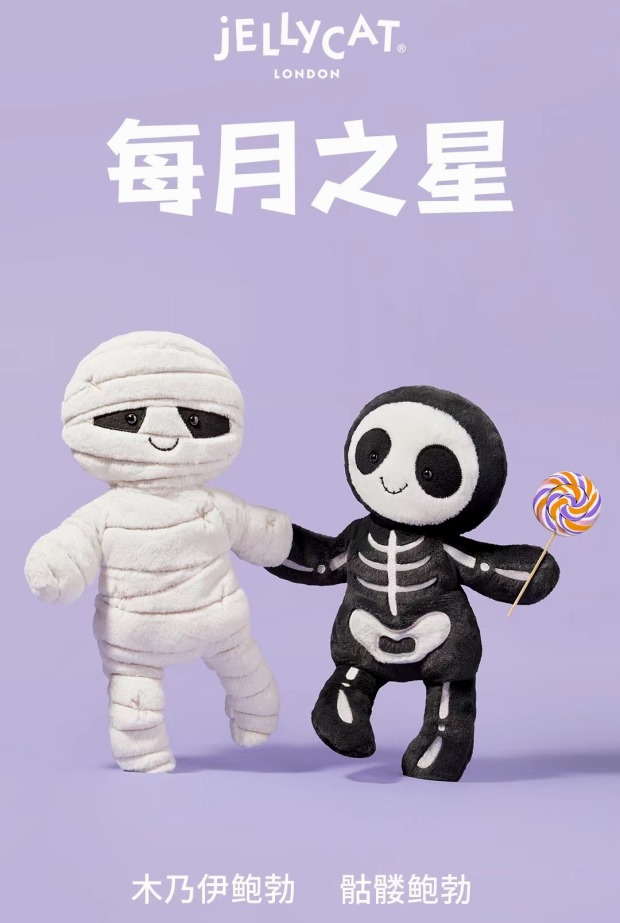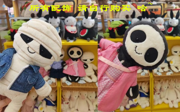 这两款的毛绒感 略有不同 木乃伊 前后绣线 后身有填充颗粒 骷髅没有 哈~