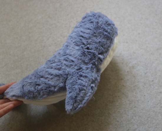 威尔伯鲸鱼 只有小号 上面示范图为例 长度就差不多 指尖到胳膊肘的样子