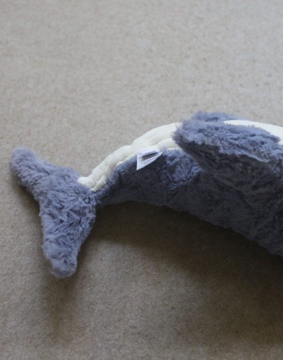 整体长约33cm 肚肚最宽处约11cm 两鳍间宽18约 肚肚中间里面有填充颗粒