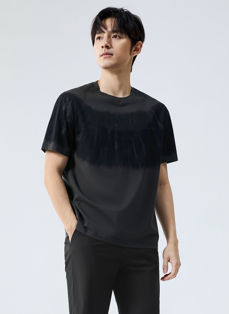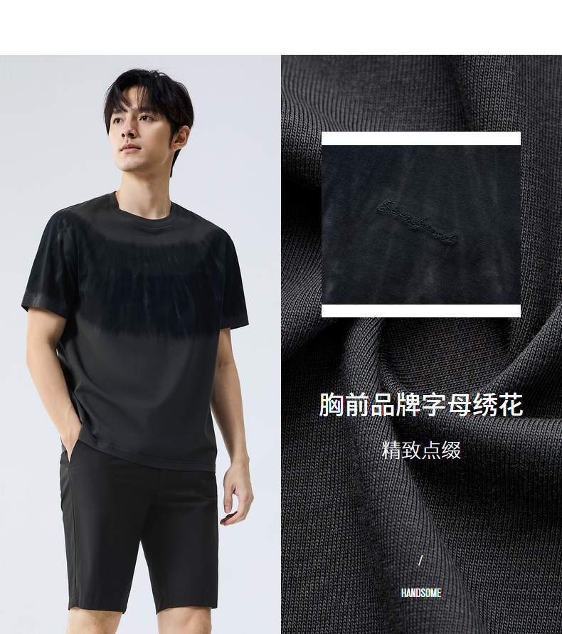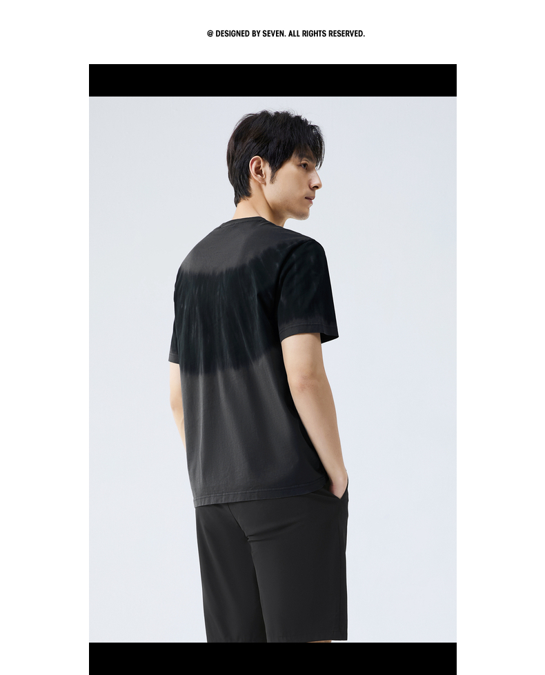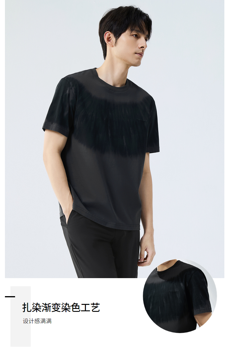 【国风图案T恤/渐变扎染】柒牌纯棉短袖T恤男士夏季新品圆领上衣128T70770