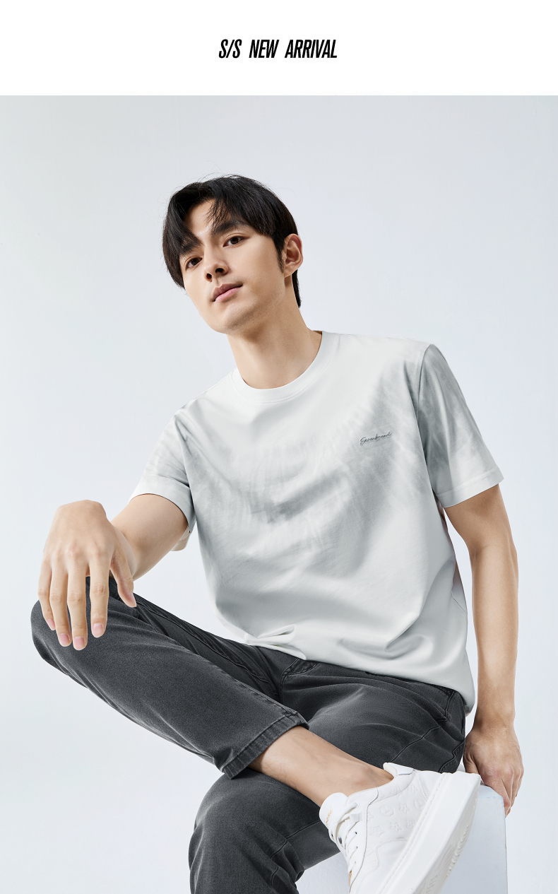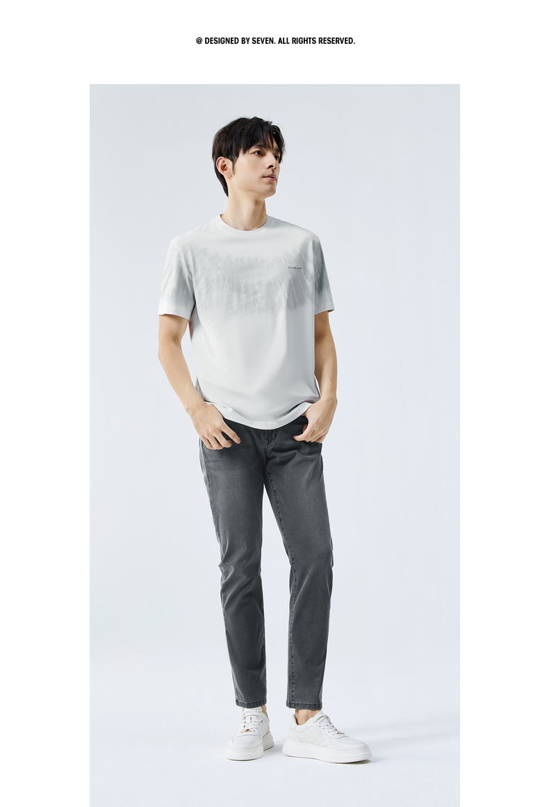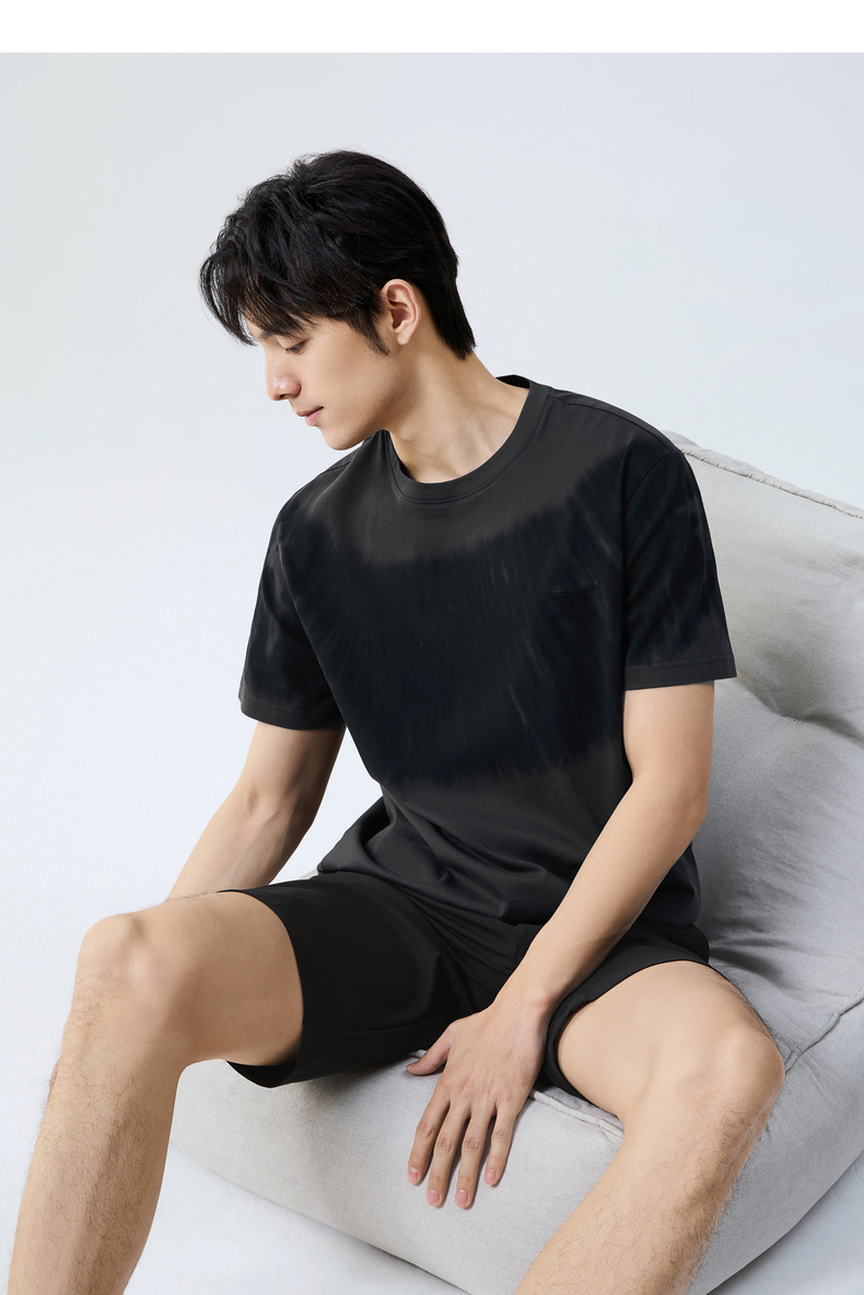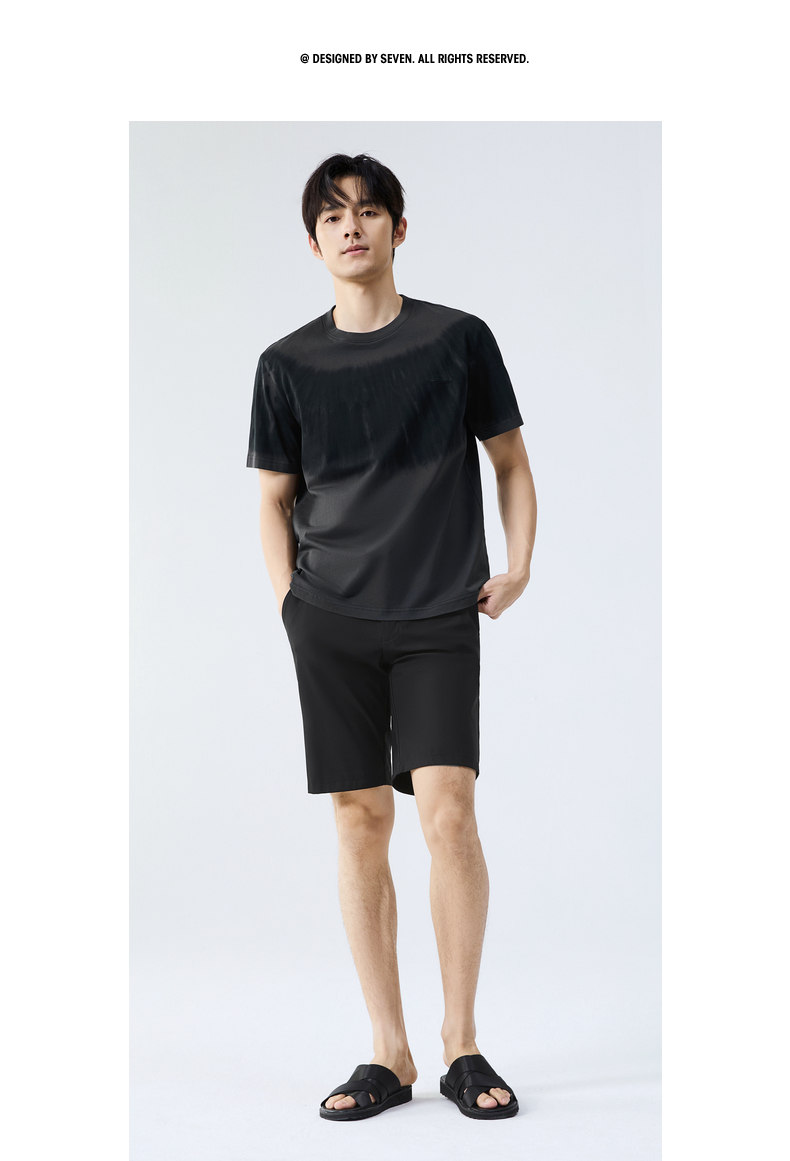 【国风图案T恤/渐变扎染】柒牌纯棉短袖T恤男士夏季新品圆领上衣128T70770