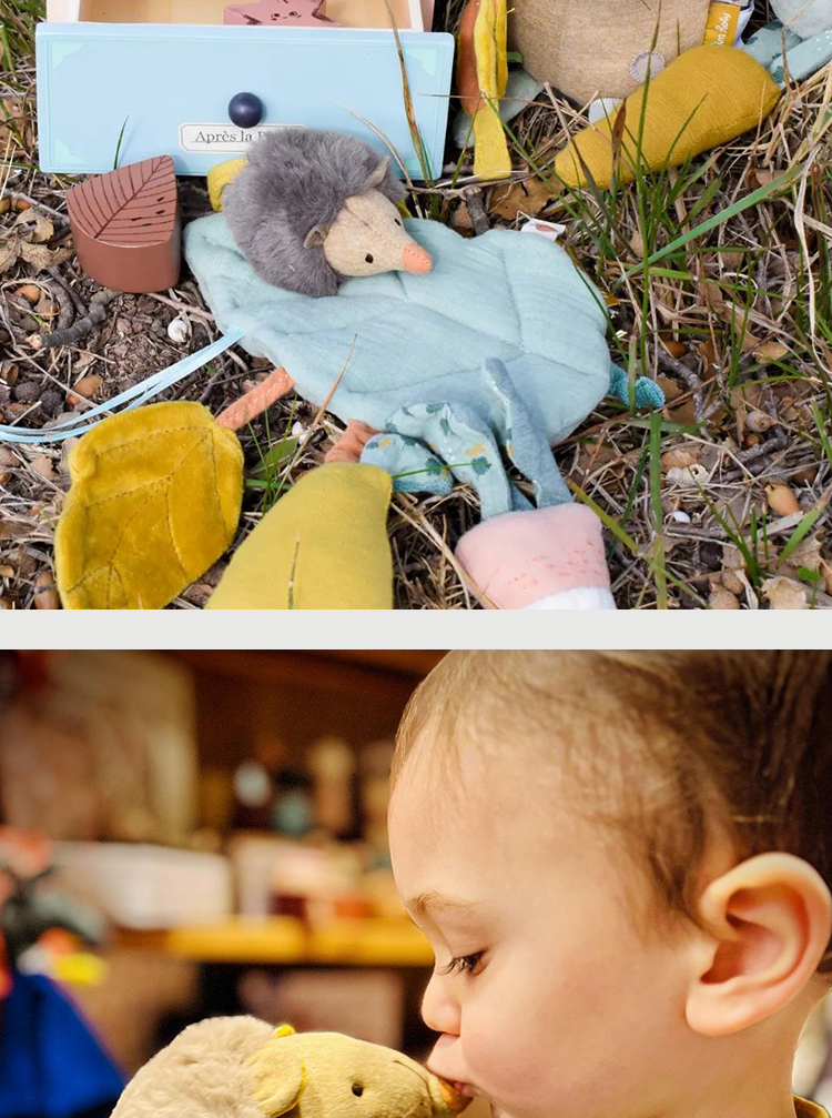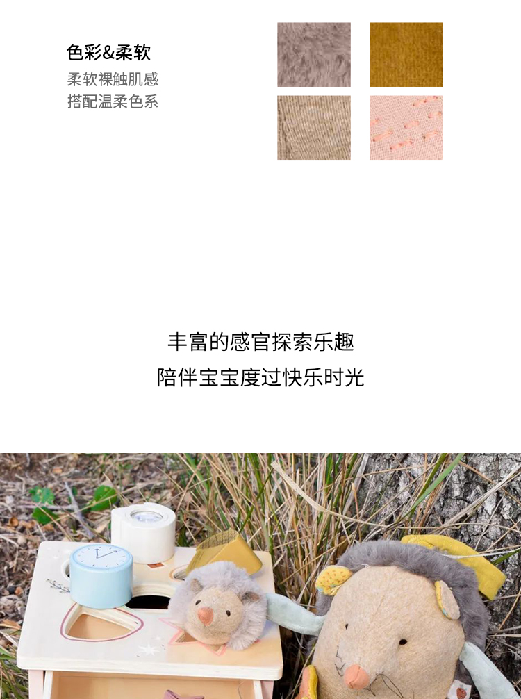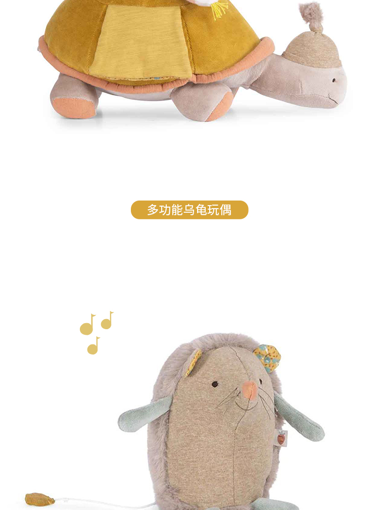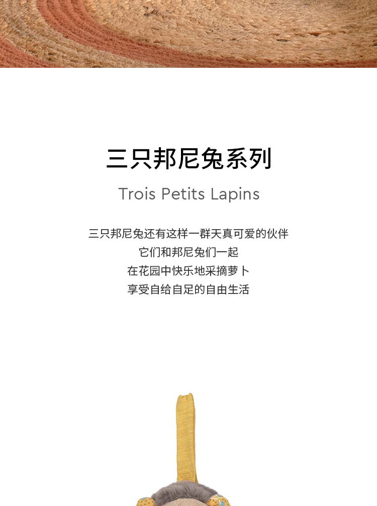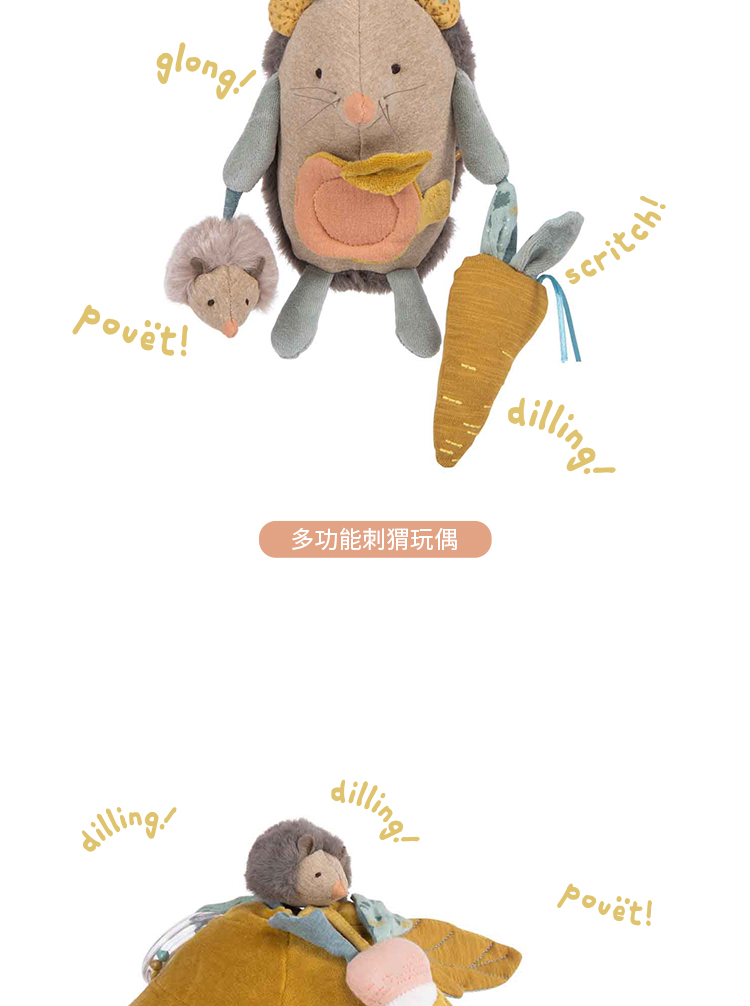 Moulin Roty 刺猬玩偶 多功能/启蒙玩偶 适用年龄0岁以上 内置摇铃 哈哈镜 三只邦尼兔系列 法国品牌-678075