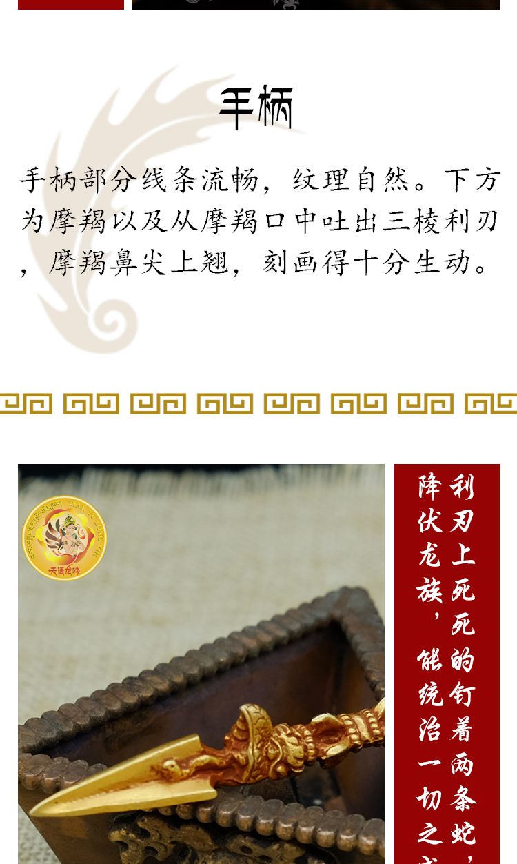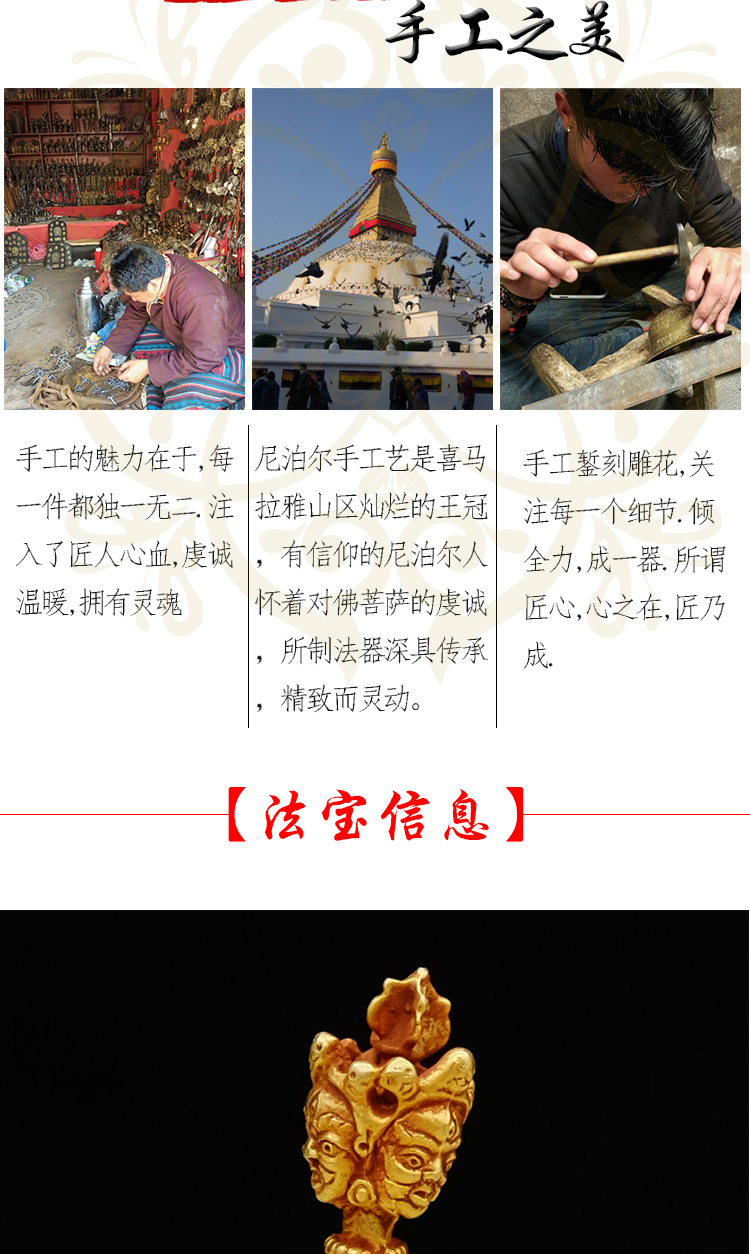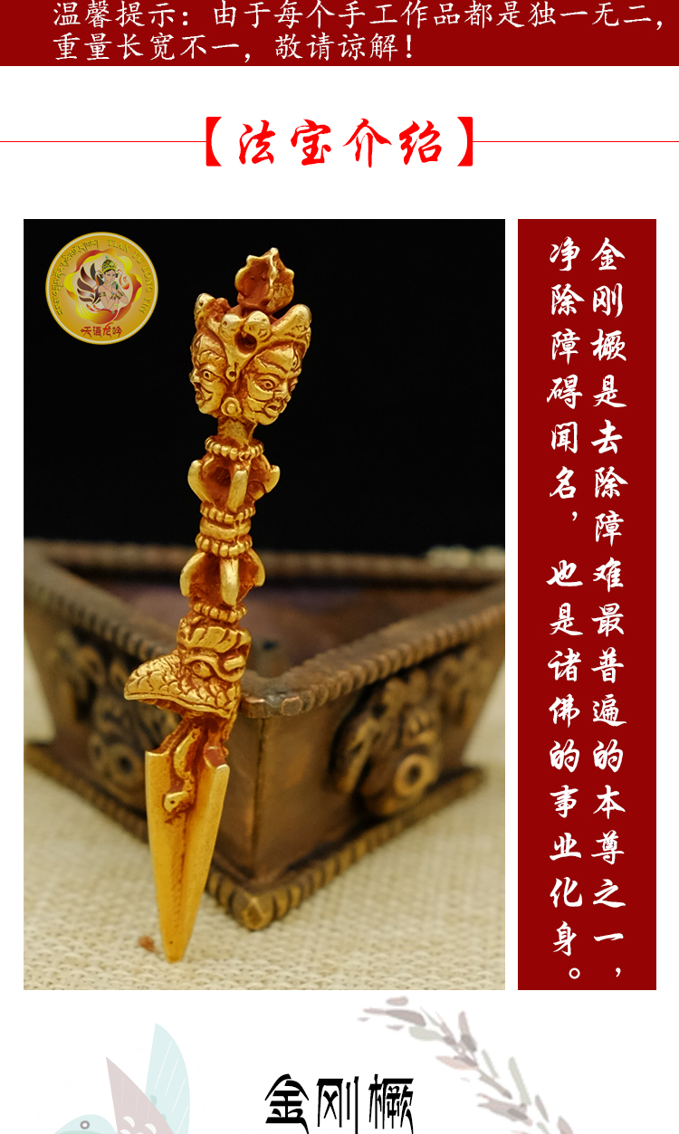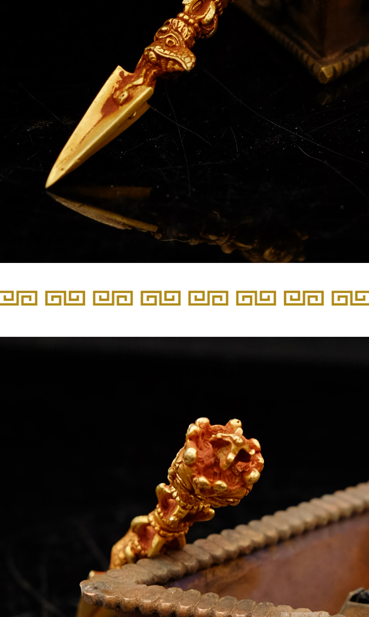 佛堂用品密宗法器尼泊尔手工紫铜鎏金金刚橛杵7.5cm