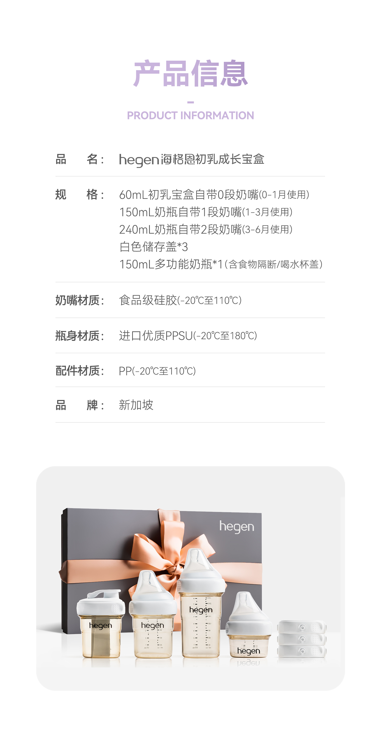 Hegen海格恩 初乳成长宝盒(60mL+150mL+240mL奶瓶+隔离式储存罐+储存盖)