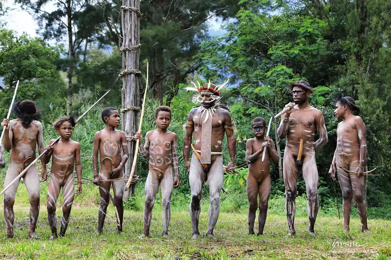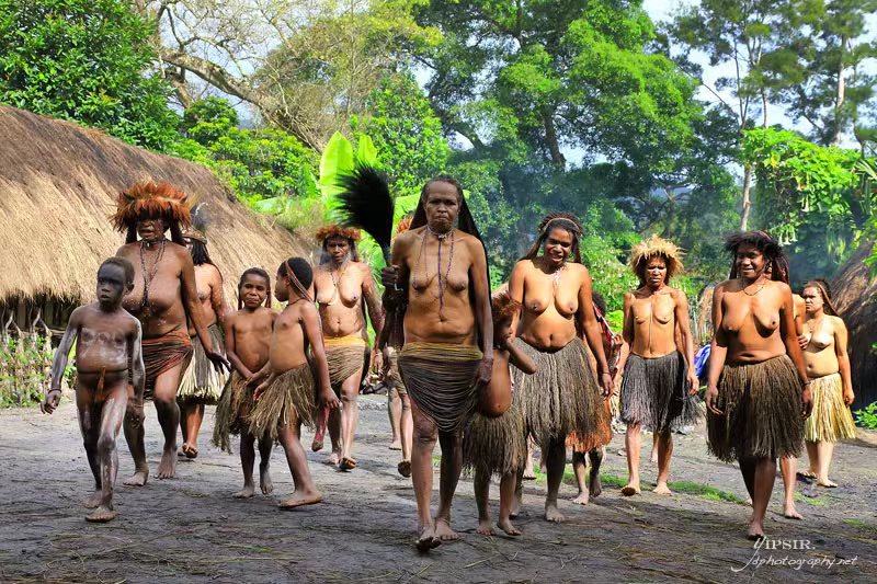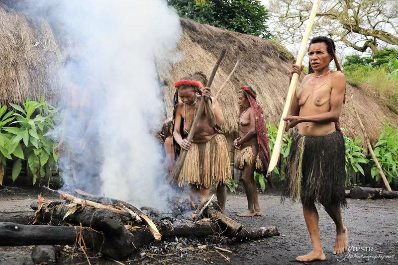 印尼巴布亚,位于印尼与新几内亚交界处,这里远离城市和喧嚣,有着地球上最原始的热带雨林部落“达尼”人,这里的男人赤身裸体,女人下身围着树皮草裙,上身不穿衣服。