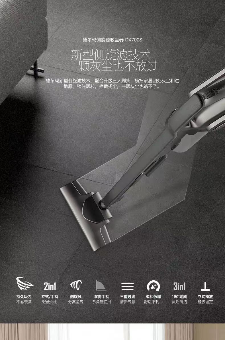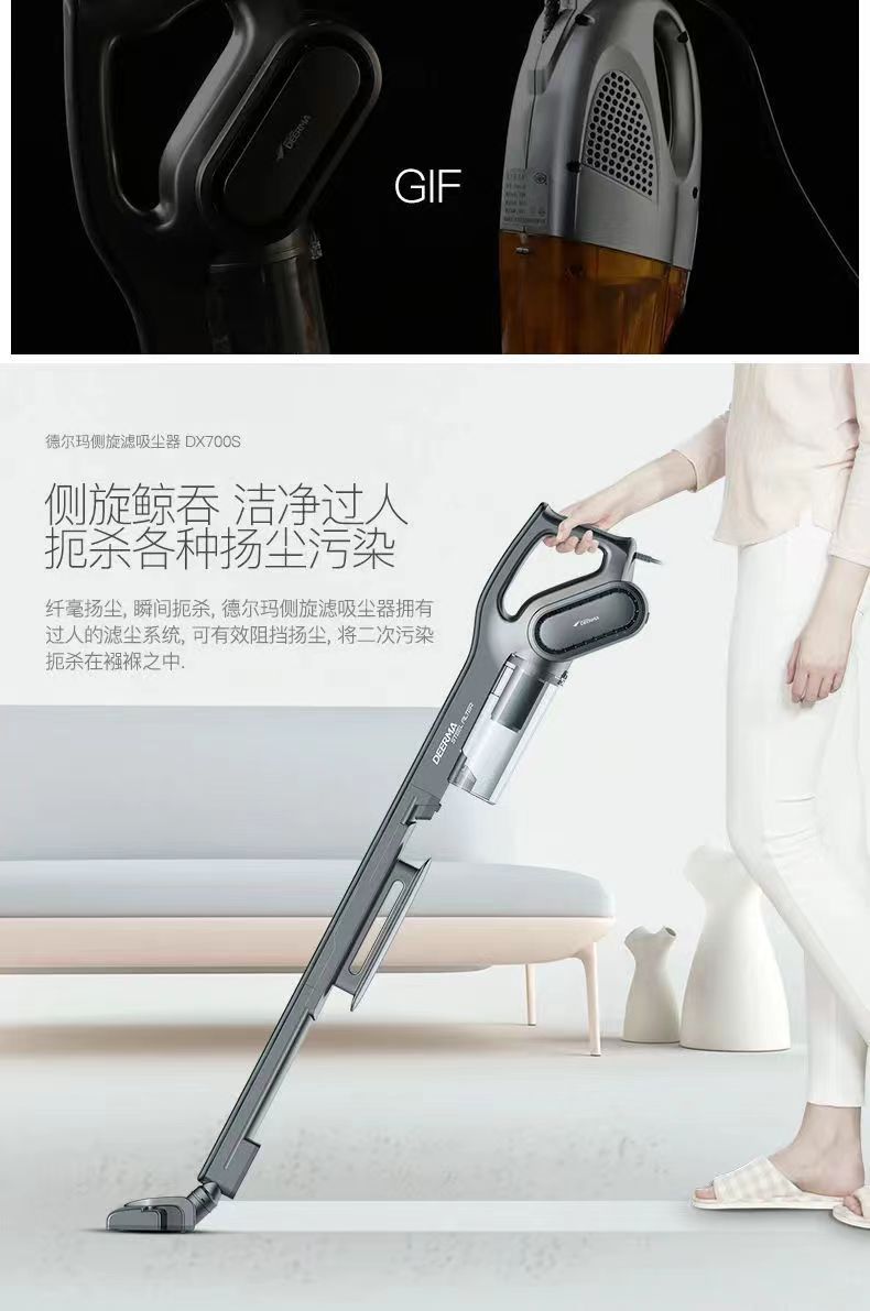 【德尔玛吸尘器】家用强力手持式 大功率地毯大吸力吸尘机dx700s 有效阻挡扬尘清理猫狗毛