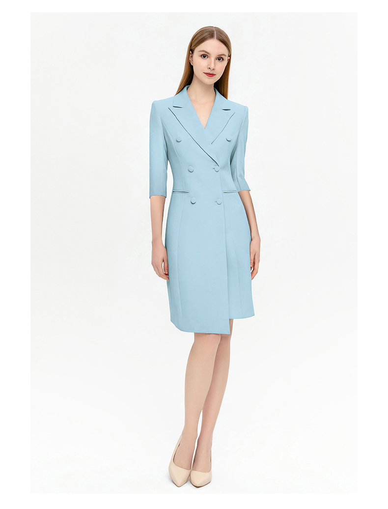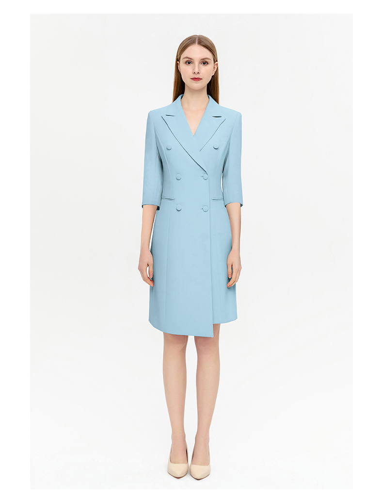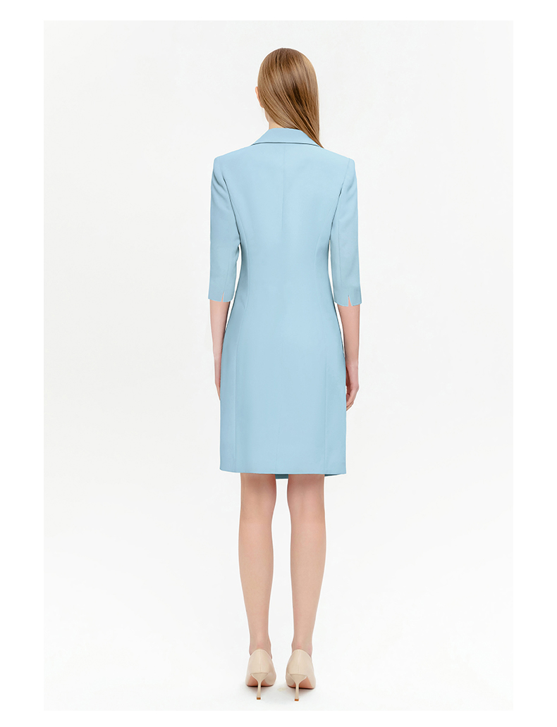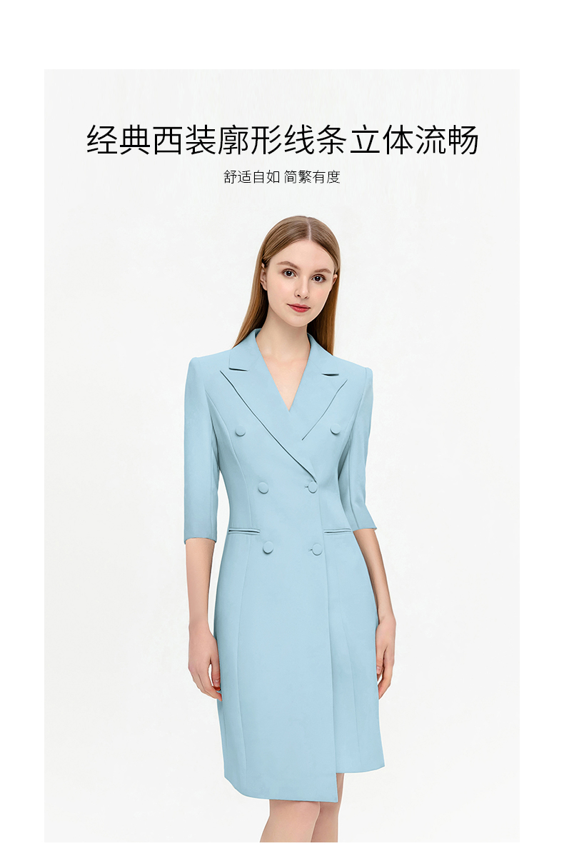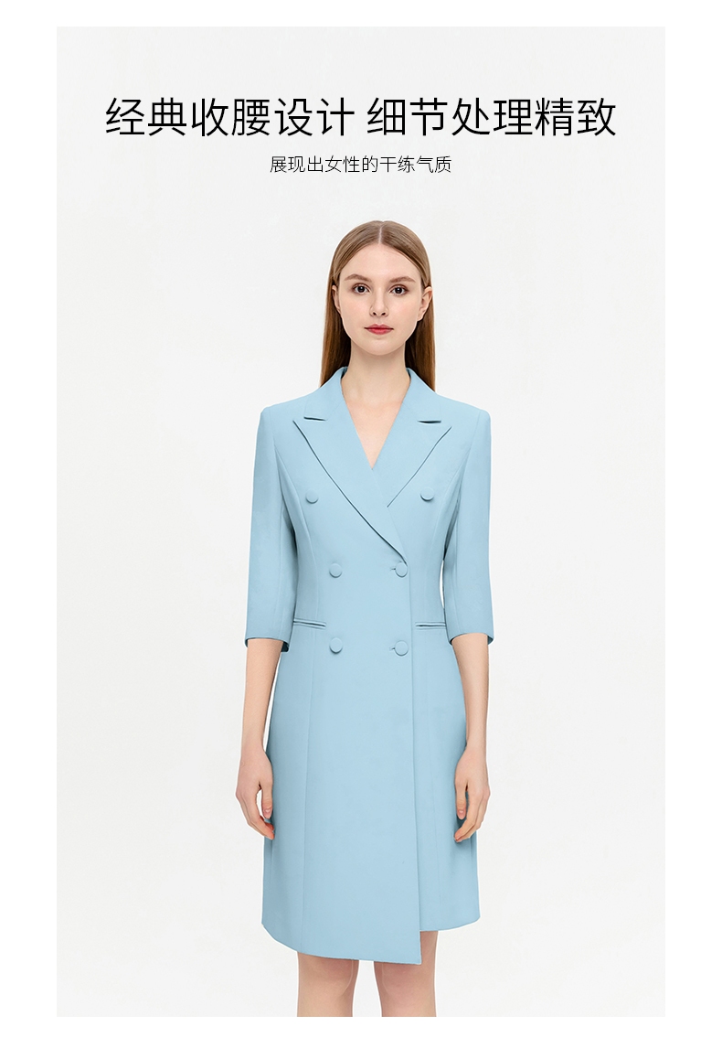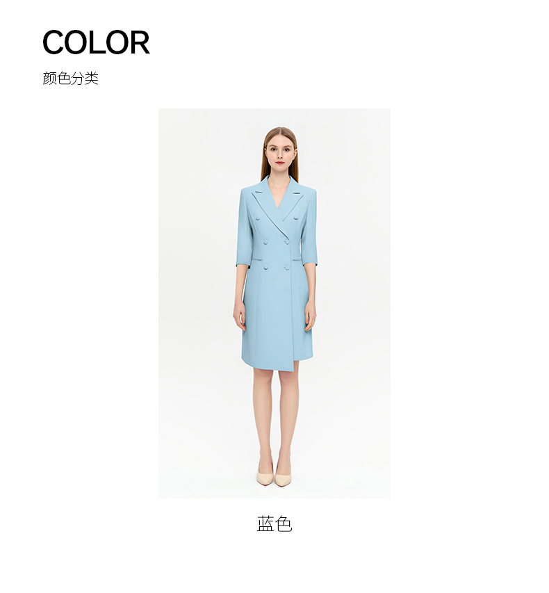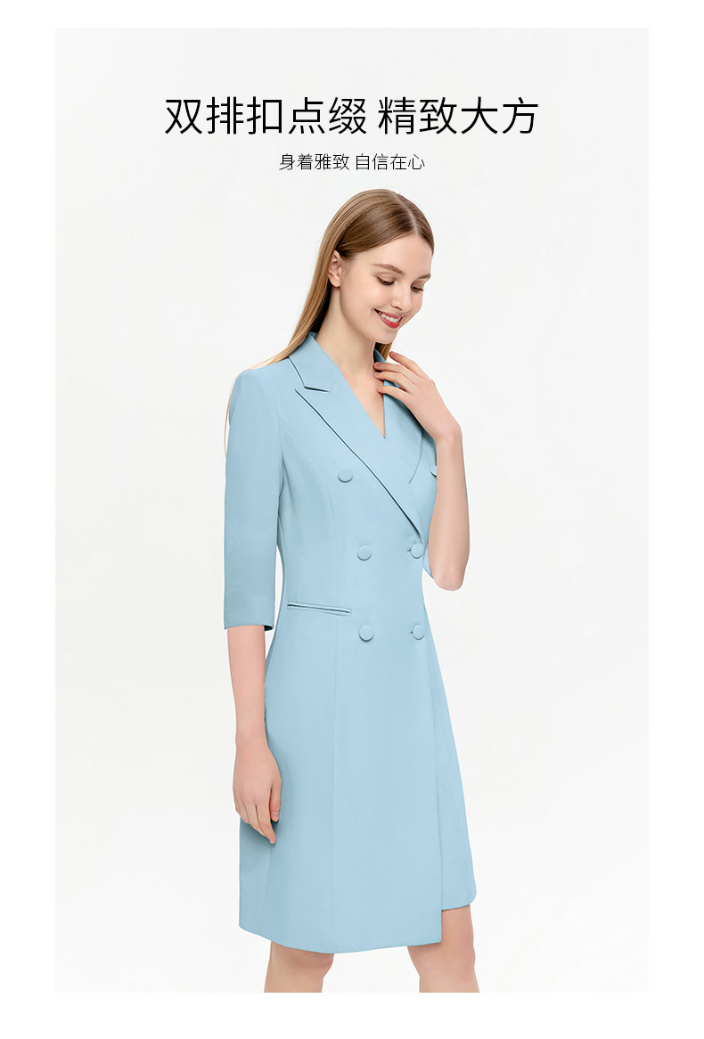IWY/蓝色西装连衣裙七分袖袖高级气质主持人播音艺考时尚通勤工装Q14235