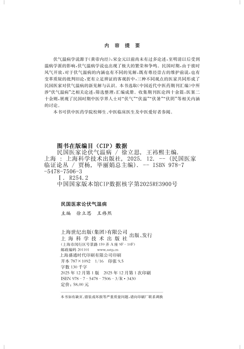 民国医家论伏气温病 民国医家临证论丛 徐立思 王祎熙 可供中医药学院校师生、中医临床医生及中医爱好者参阅 上海科学技术出版社