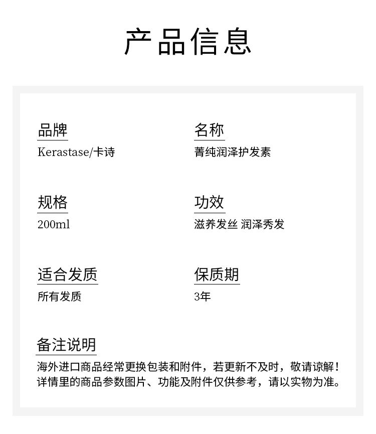 【预售 急单慎拍】Kerastase卡诗 菁纯润泽护发素200ml顺滑滋养护理