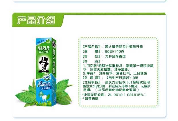 黑人牙膏茶倍健龙井薄荷初萃140g
