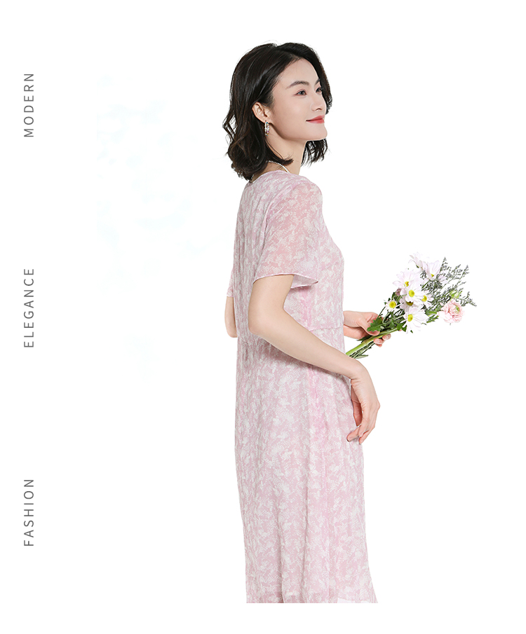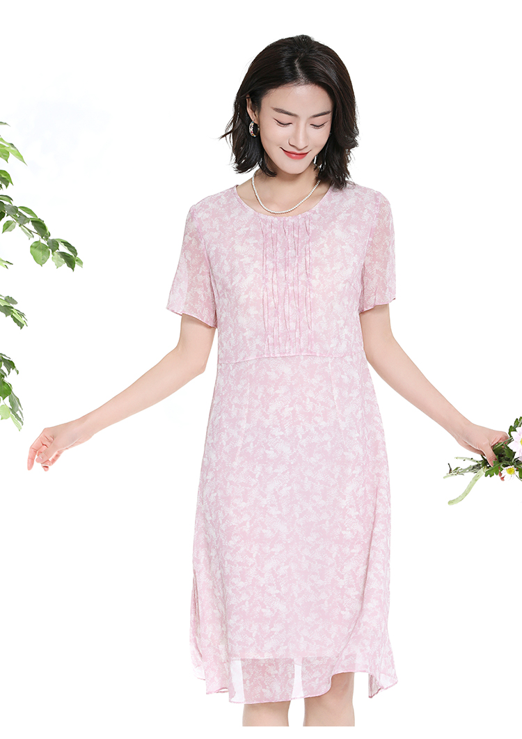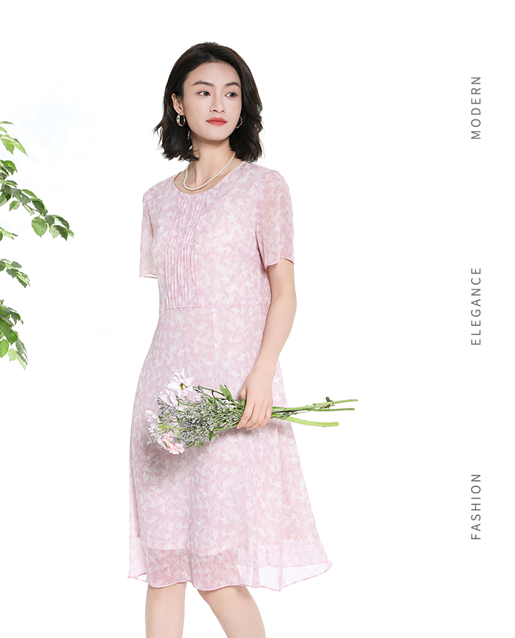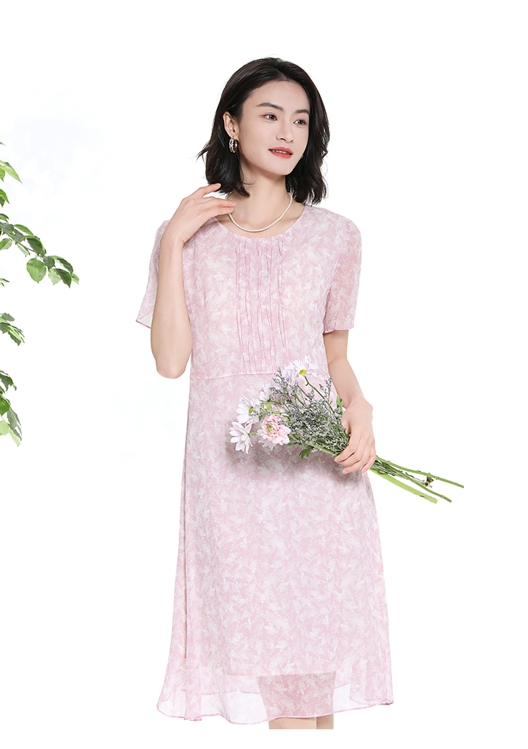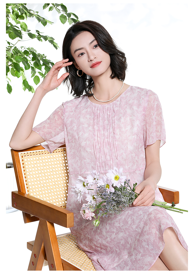 佐尔美夏季新款时尚气质碎花桑蚕丝短袖连衣裙女M42LS50