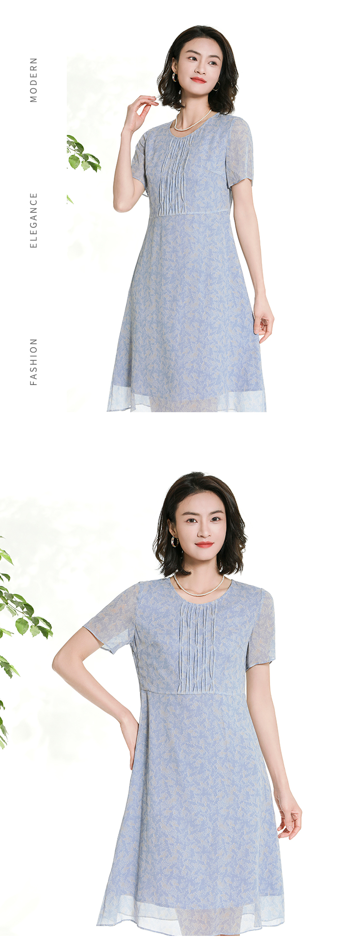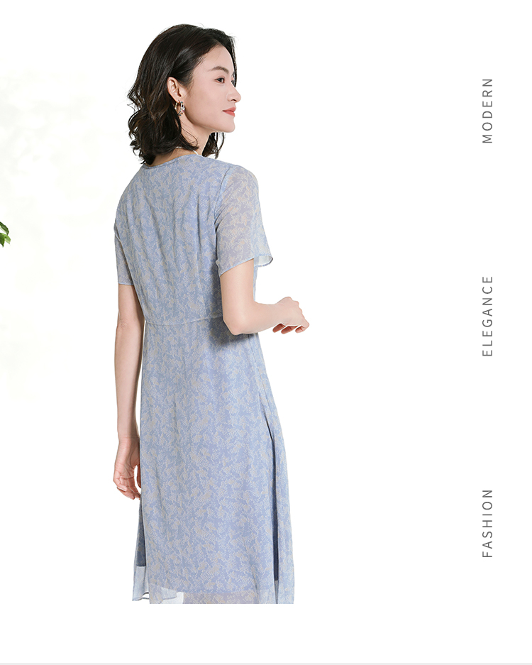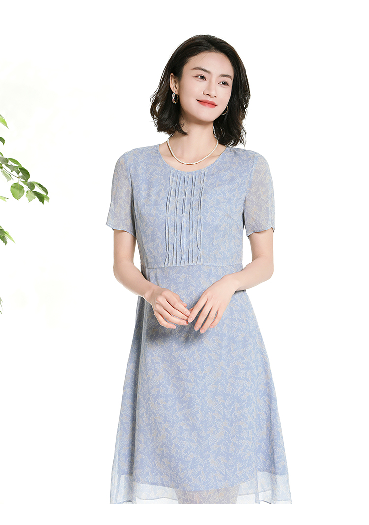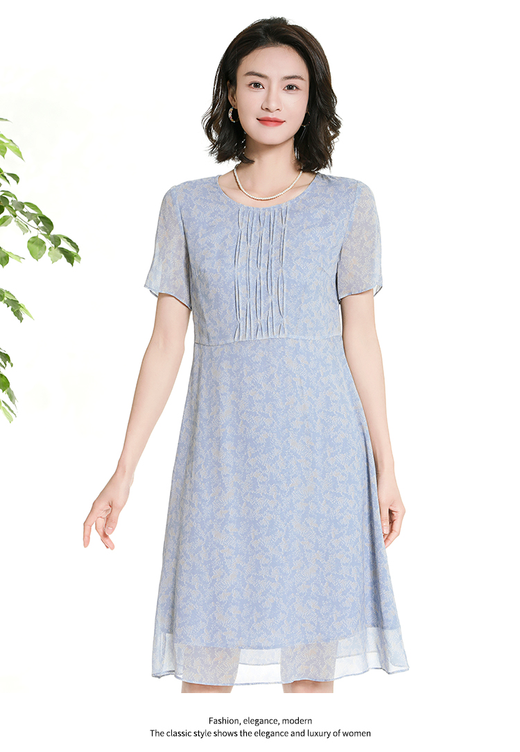 佐尔美夏季新款时尚气质碎花桑蚕丝短袖连衣裙女M42LS50
