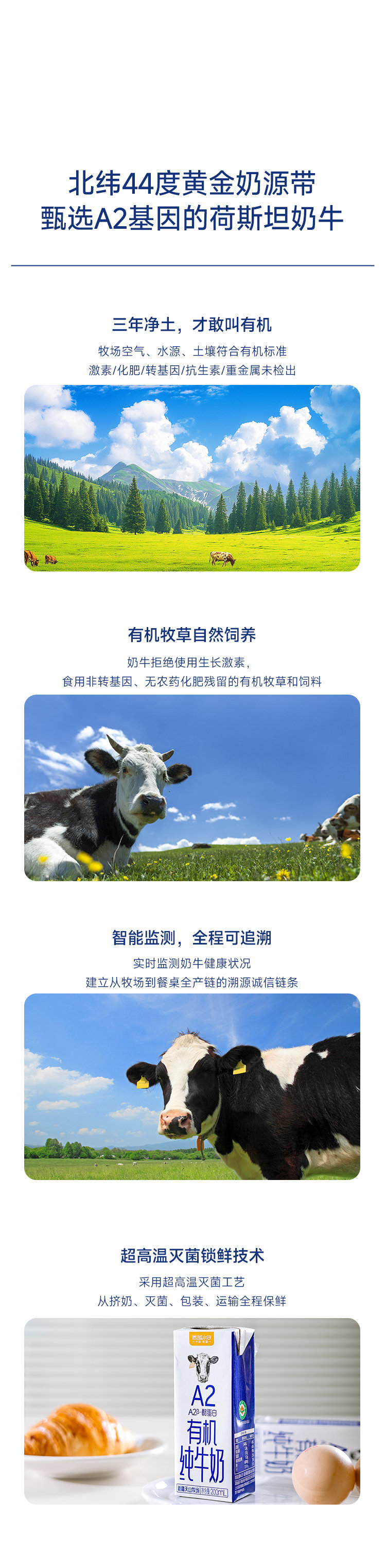 不是所有的奶牛都是A2奶牛,全球大概只有30%左右A2奶牛。而我们每一头奶牛都是有机认证的纯种荷斯坦奶牛,确保奶牛100%纯正血统,生产的牛奶也更纯净。