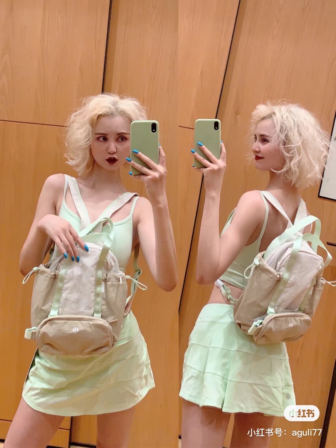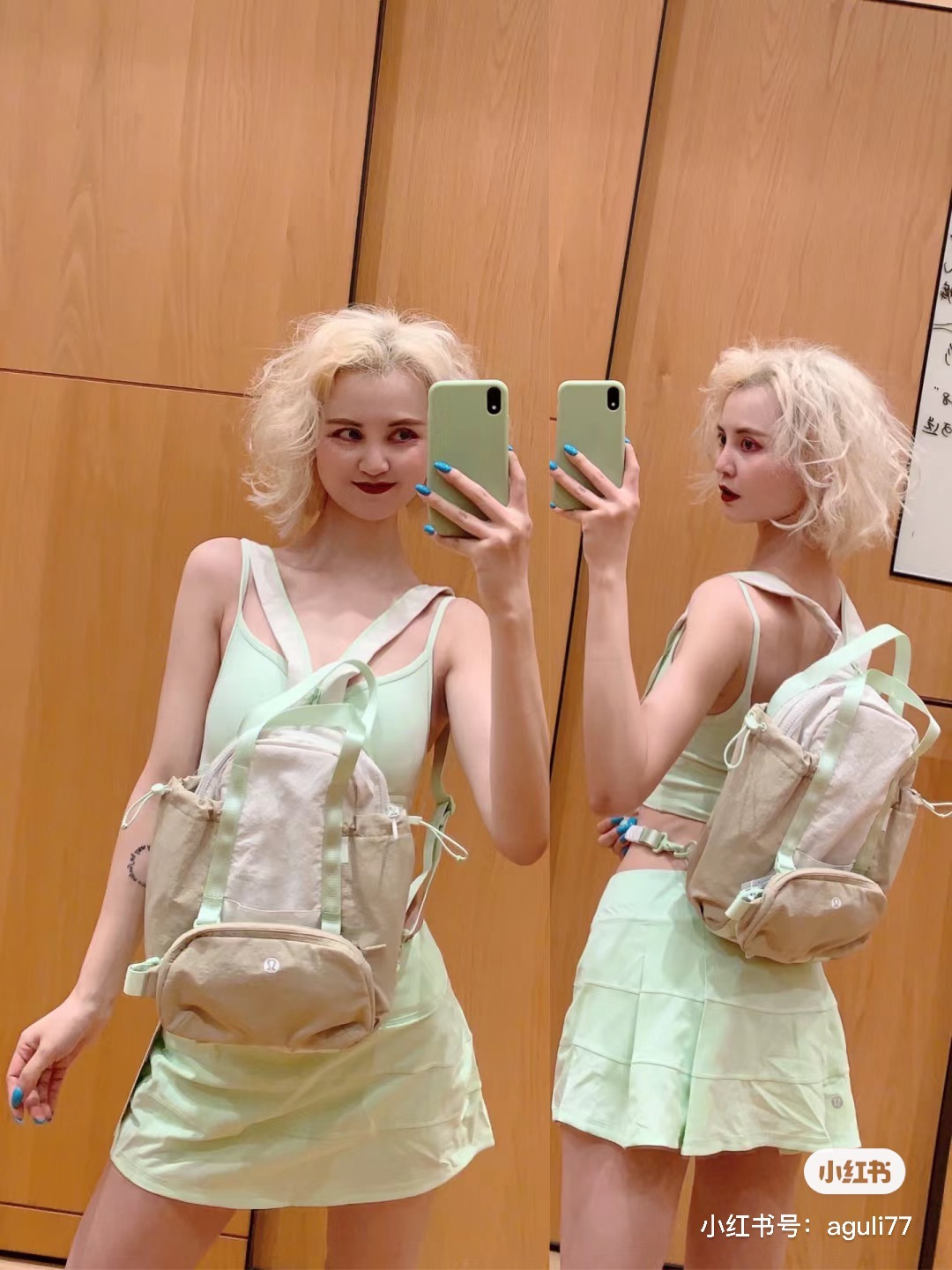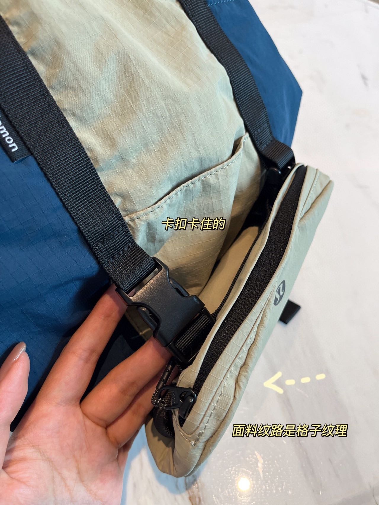 整体的设计就很lulu风,不管是配色还是包型整体看上去非常简约!