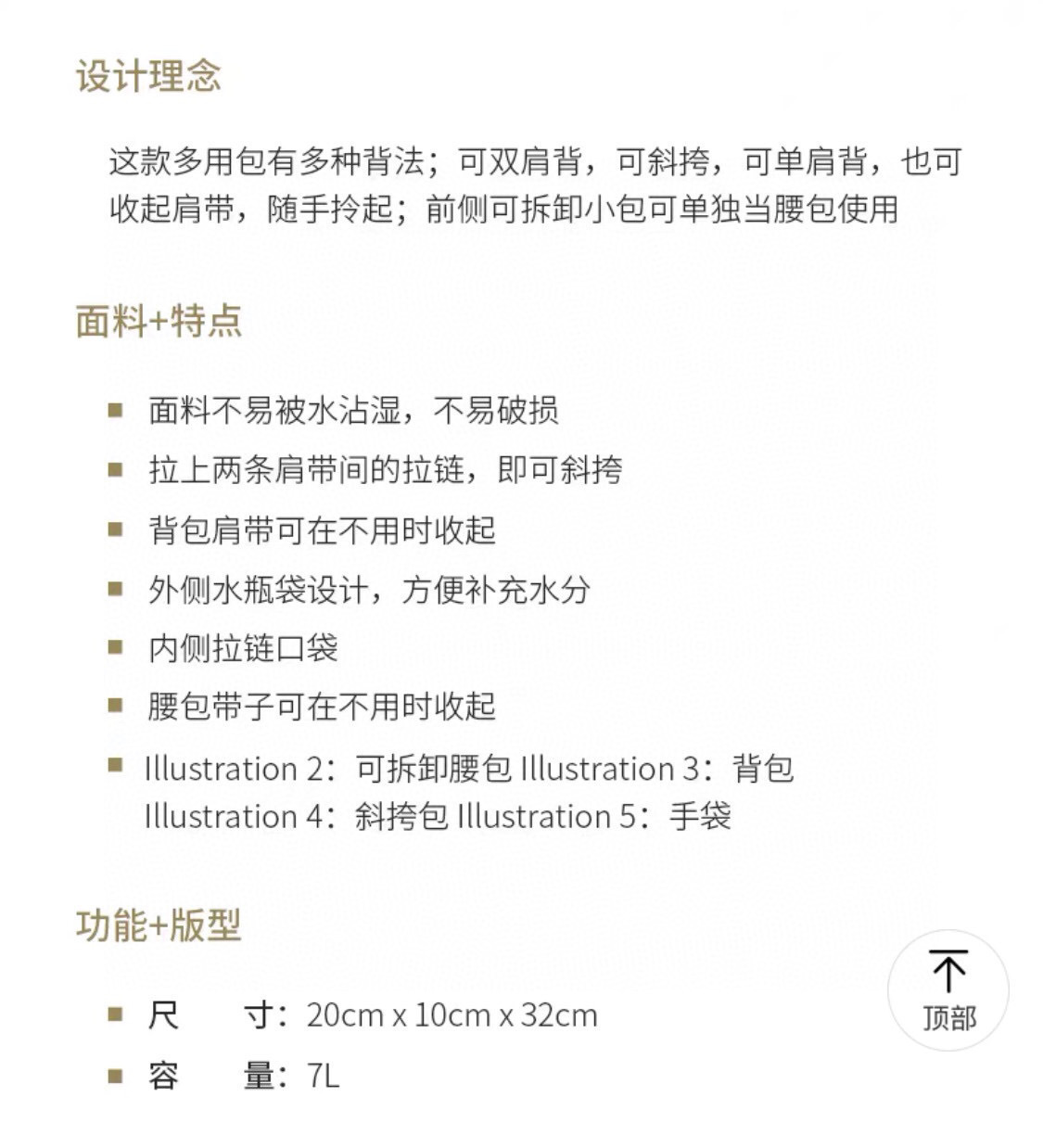 包身轻便,功能明确,很适合运动来使用,也是很多妈妈出门的最佳选择~~