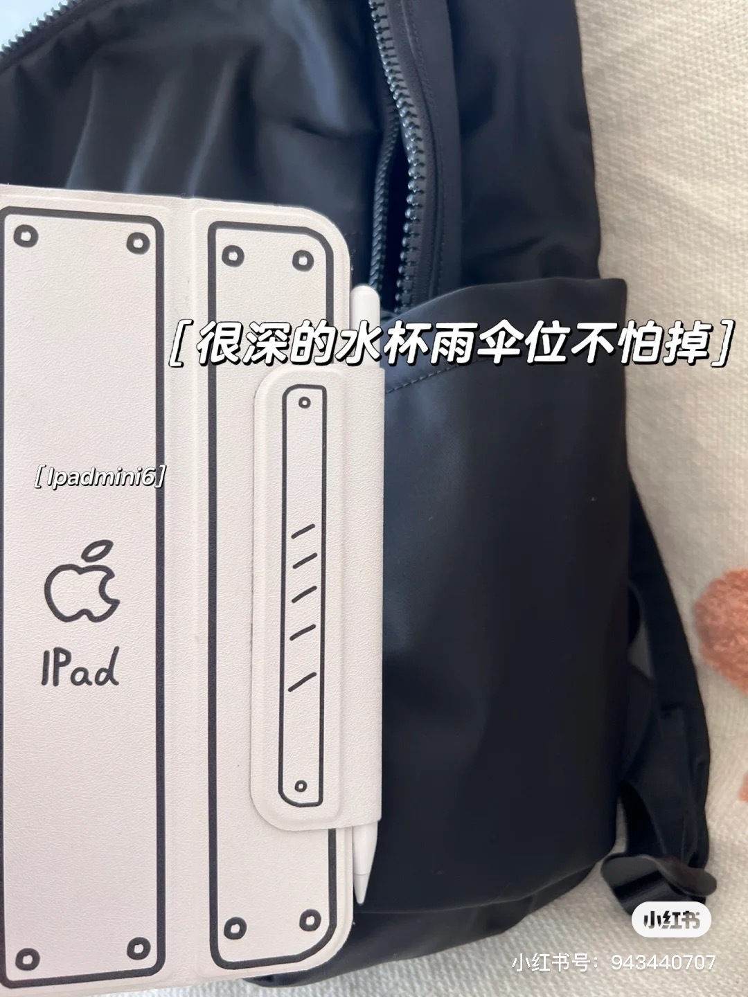外侧水杯雨伞都是可以放的,背部侧面还有隐形拉链袋!