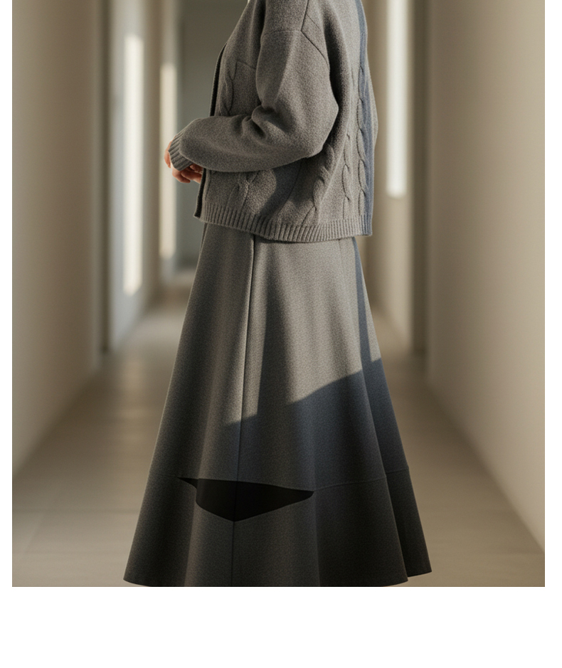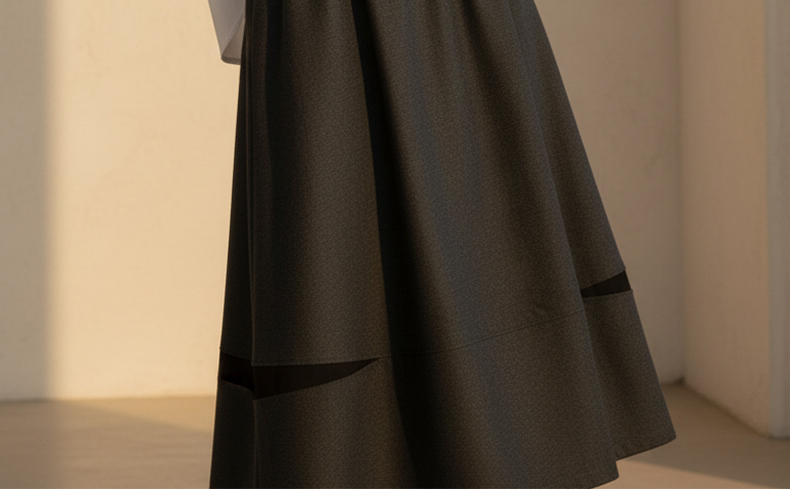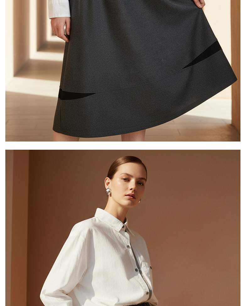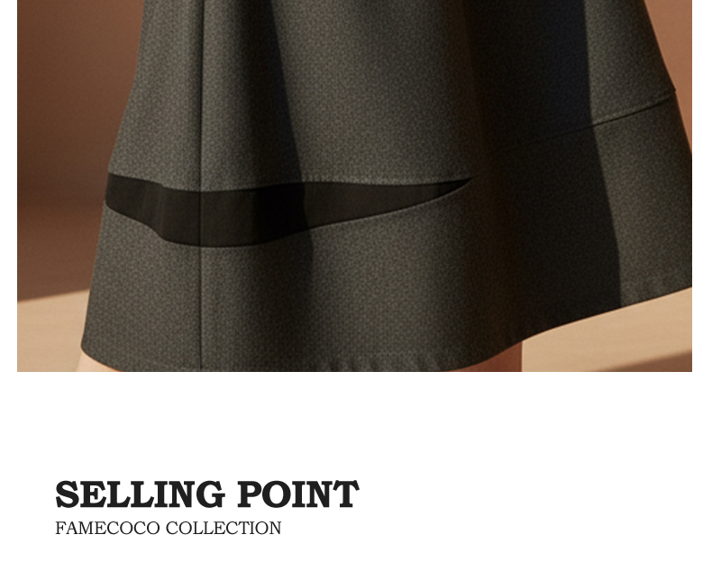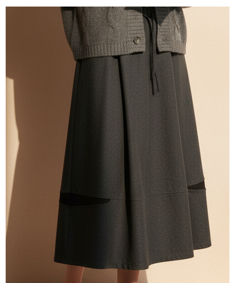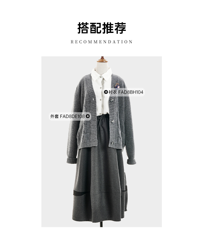 Famecoco范可儿文艺休闲拼接设计松紧腰半身裙宽松百搭FAD8HA106