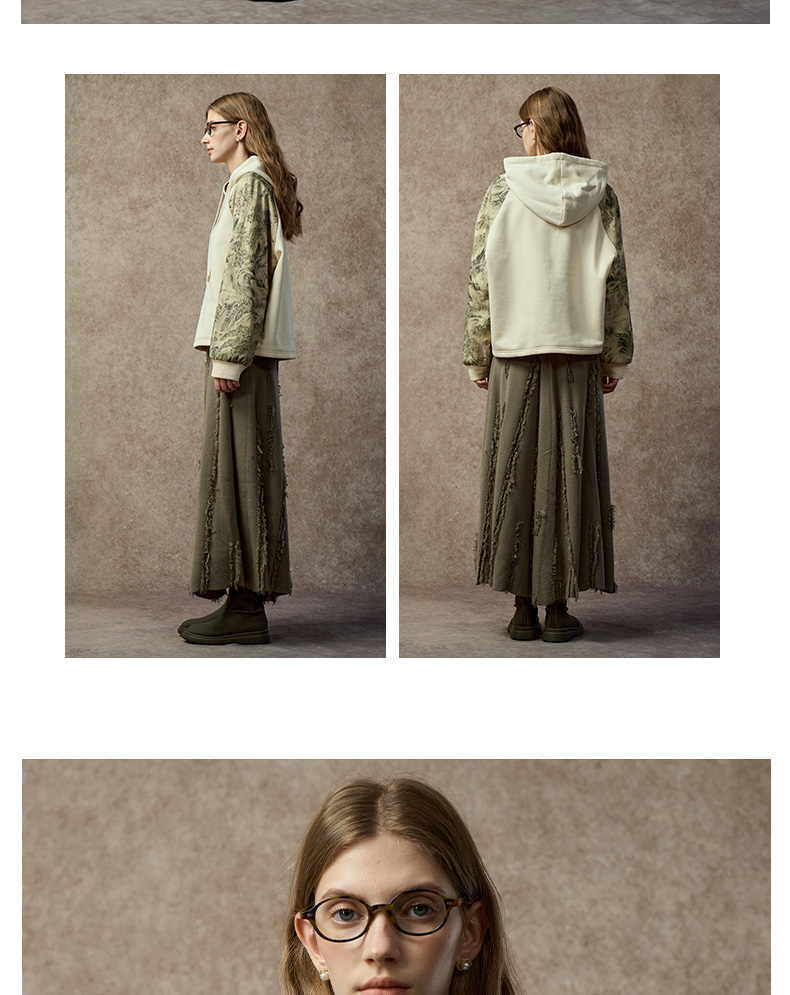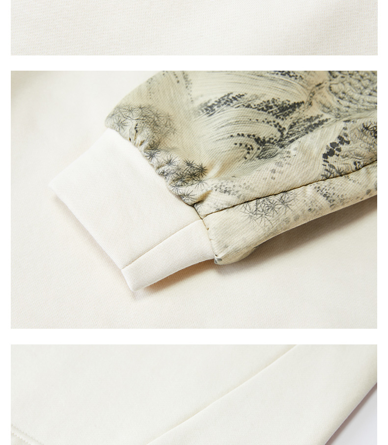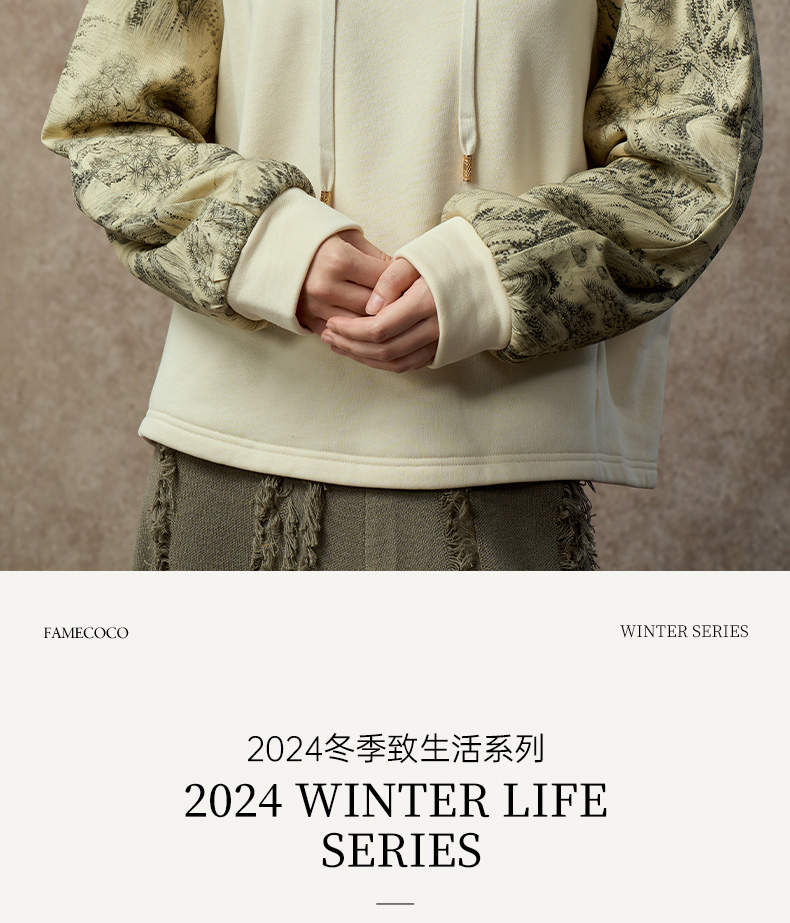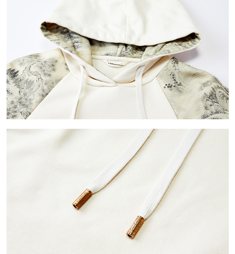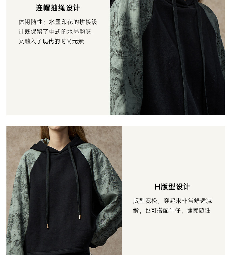 Famecoco范可儿新中式水墨印花插肩袖连帽卫衣FAC8BL003