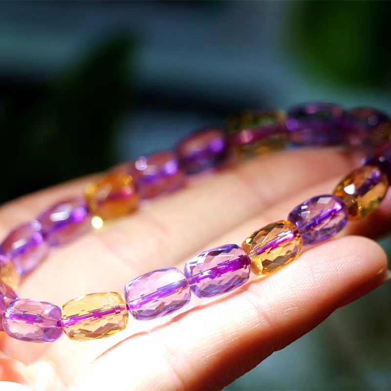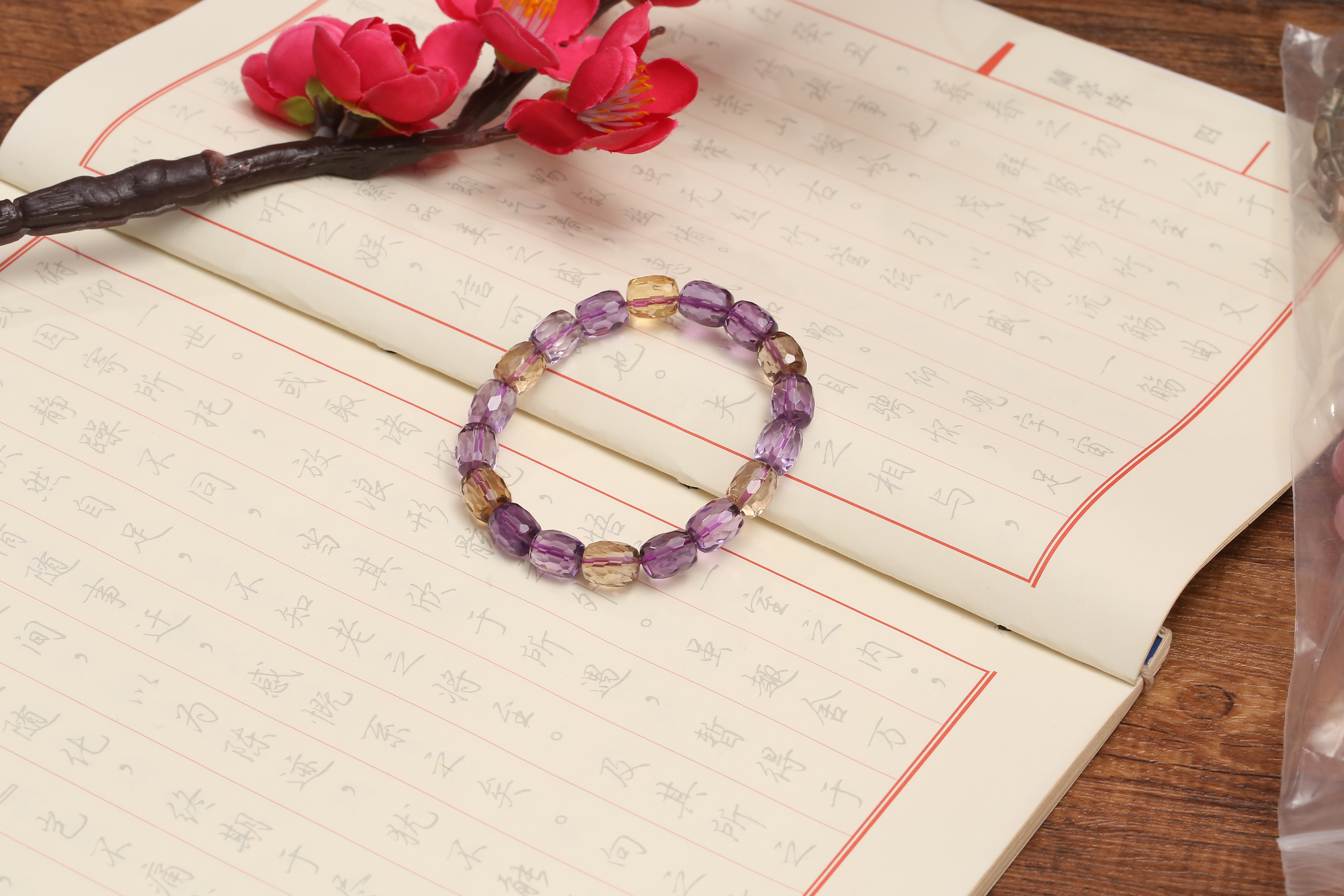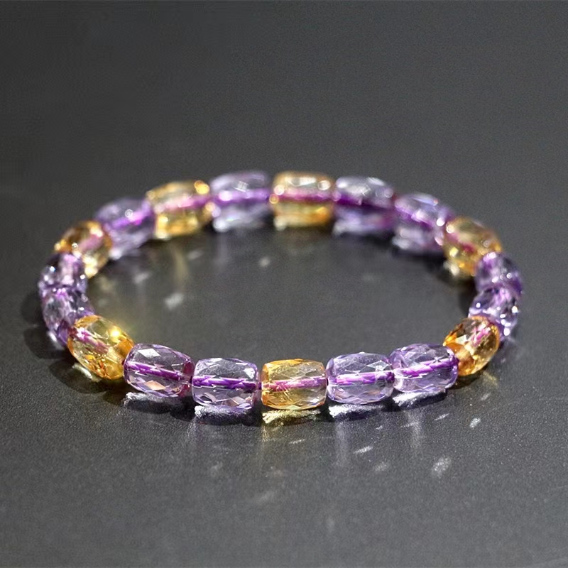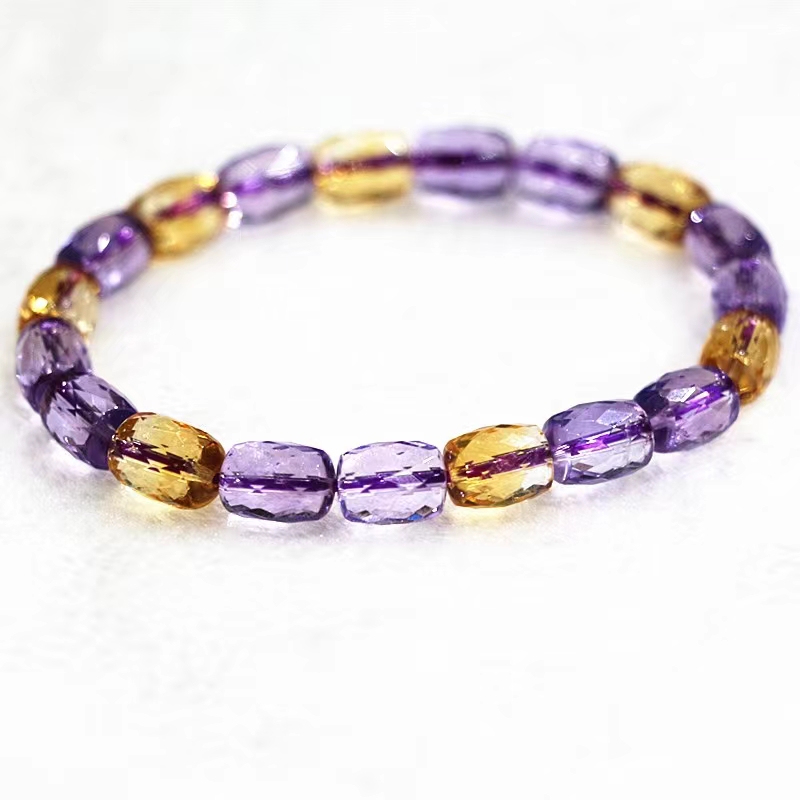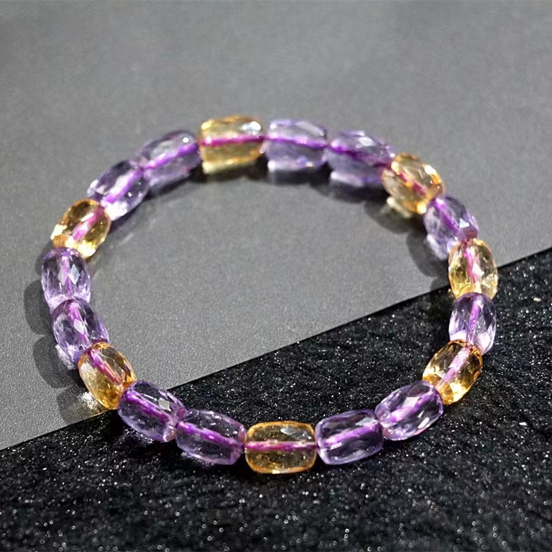 紫黄晶刻面桶珠水晶手链 12mm 紫水晶黄水晶撞色单圈手串简约送礼物 首饰饰品